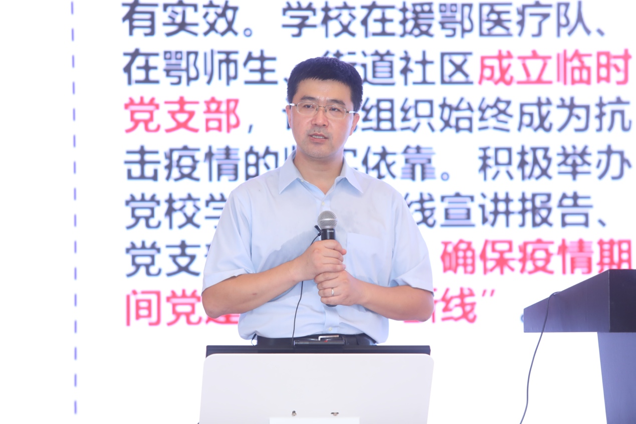 过勇作了题为“做一名合格的共产党员”的开班报告。报告中,过勇结合党的历史、新葡萄党组织的历史和优良传统、新葡萄师生组成“伟大复兴”方阵参加国庆70周年群众游行以及新冠疫情期间的党员先锋模范事迹,从坚定理想信念、加强学习,遵守党章、加强党性修养,甘于奉献、带头作为三个方面,生动阐释了做一名合格共产党员的要求。他希望全体学员能够端正入党动机,坚定理想信念,认真学习党的理论和路线方针政策,尤其在疫情防控常态化形势下能顾全大局、听从指挥,加强防护、坚定信心,及时响应、主动作为,凝心聚力、共克时艰,用实际行动发挥模范作用,参与和支持疫情防控工作。