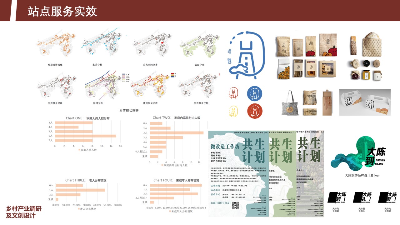 2018年1月至今,工作站共组织121支支队,来自60余所大专院校、50余个专业的超过1400人次的师生,前往祖国19个省份34个区县(其中贫困县10个,均已成功脱贫)开展“工作站”建设与公益实践,累计服务时长超过12000人天;完成工作站设计方案51份,目前已投入使用或即将投入使用的站点10处;完成乡村文创产品140余份,部分已投入市场或被政府采用;走访调研村落150余个,完成调研报告累计达112.5万余字并提交当地政府及相关部门参考;跟踪性固定调研观察点700余户,开展乡村座谈会400余次;通过骨干技能培训覆盖5000多人次,通过乡村振兴云讲堂覆盖乡村干部与村民2万余人次。以上工作为精准扶贫、科学施策提供了坚实的智力指导与调研支撑。