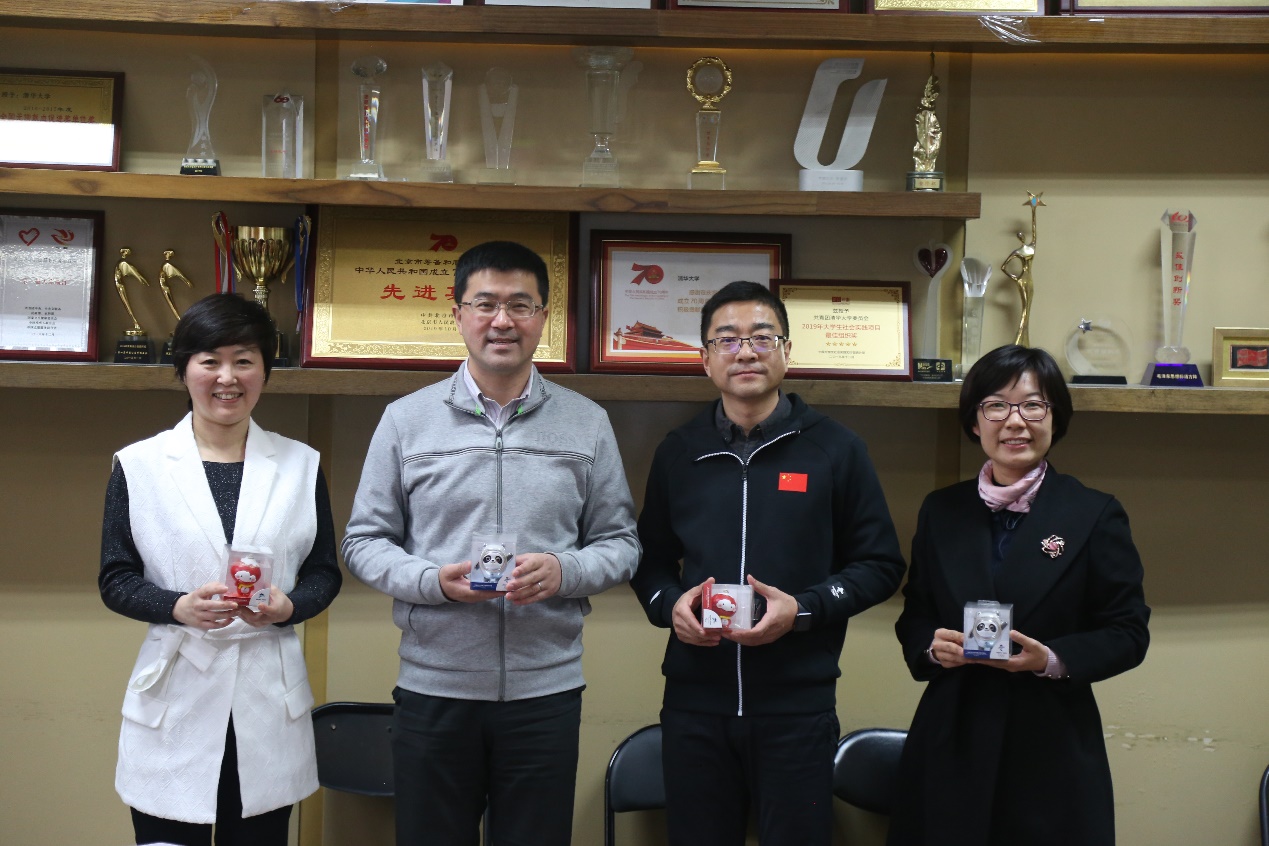 会后,冬奥组委志愿者部向过勇等赠送了冬奥会吉祥物并合影留念。冬奥组委志愿者部处室负责人胡凯、任炜、陈永伟、闫奎铭、郑维、何滨,团市委冬奥办主任徐洪业,校团委副书记赵璞、李沛雨、黄成等参加调研。