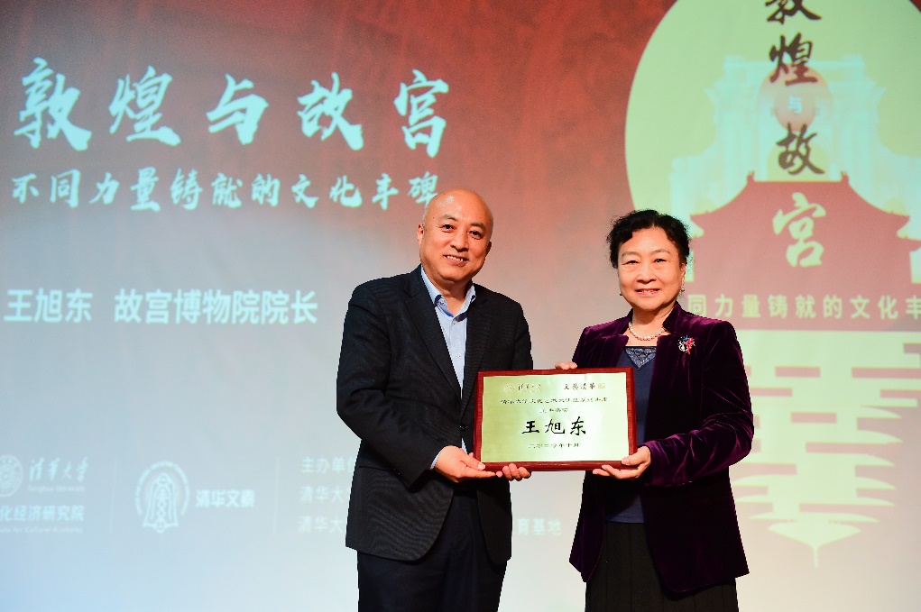 作为首期主讲人,王旭东结合自己在敦煌和故宫两地的工作生活经历,详细阐述了敦煌与故宫两座文化宝库形成时的经济社会背景及发展历史,同时分享了他对这两座文化丰碑的感悟。他指出,丝绸之路不仅是贸易之路、科技传播之路,更是文化交流之路。因此,处于特殊地理位置的敦煌,也肩负起了这条路上的重要历史使命。从公元四世纪到十四世纪,古代劳动人民对宗教的虔诚构筑起了璀璨的敦煌文化,这也是中西方文化交流的结晶。而故宫文化宝库的形成则体现了国家力量的推动。今日的故宫堪称厚重而又博大的中华5000年文明的承载者,是中华优秀传统文化的汇聚地。