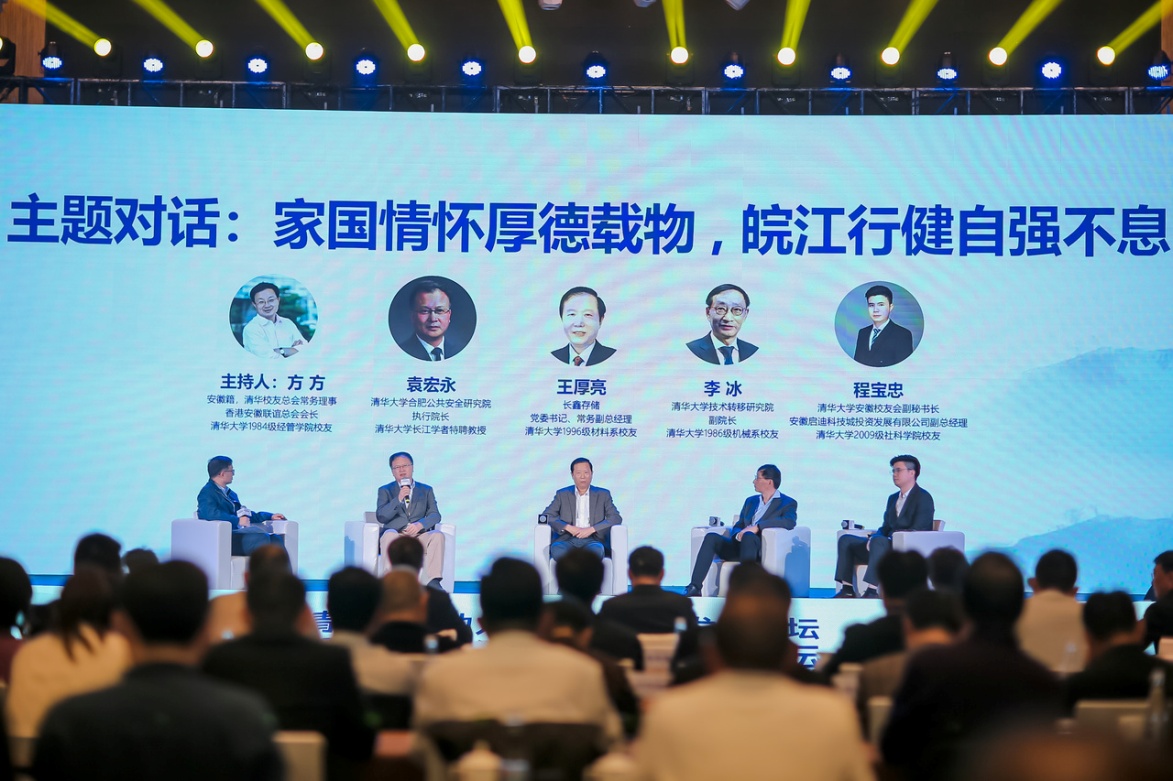 随后,“家国情怀厚德载物,皖江行健自强不息”的主题对话在温馨热烈的气氛中开启。对话由校友总会常务理事、香港安徽联谊总会会长方方主持。新葡萄官网AMG合肥公共安全研究院执行院长袁宏永,长鑫存储党委书记、常务副总经理王厚亮,新葡萄官网AMG技术转移研究院副院长李冰和安徽校友会副秘书长、安徽启迪科技城投资发展有限公司副总经理程宝忠四位嘉宾参加,共话校地合作发展。