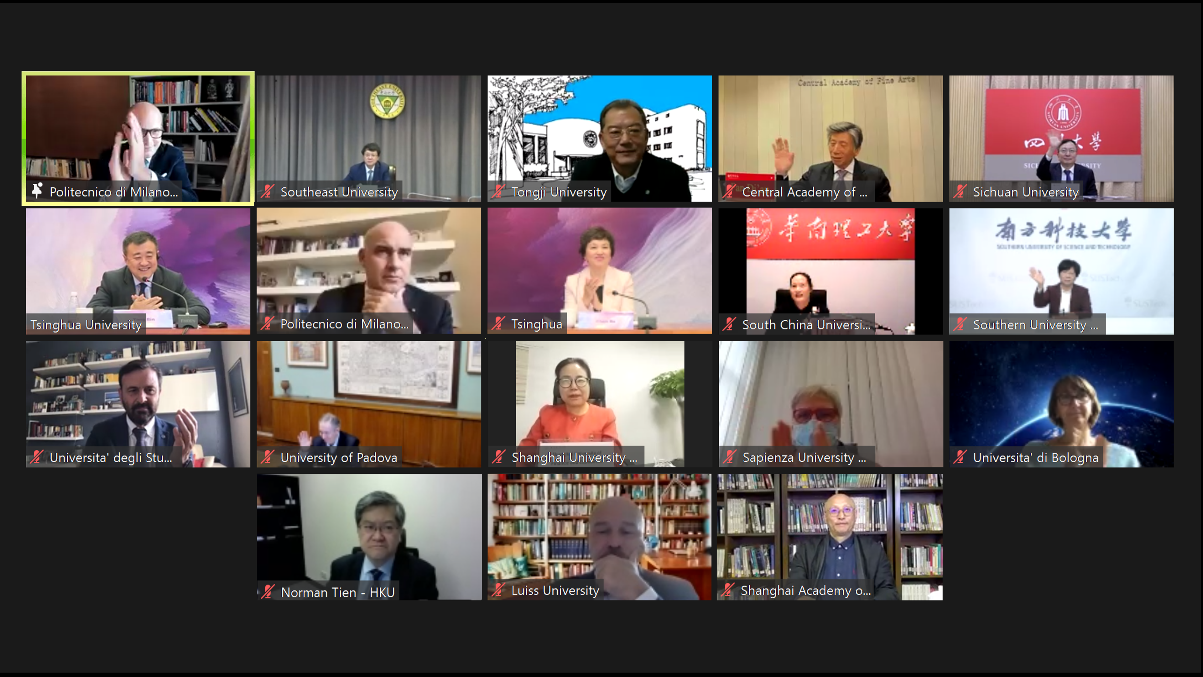新葡萄新闻网11月6日电(记者 田姬熔 摄影 常志东)北京时间11月5日晚,在中意两国建交50周年之际,新葡萄官网AMG与米兰理工大学联合举办“协同创新,共创未来”中意大学校长论坛,并启动“中意青年创新创业年”。论坛在新葡萄官网AMG主楼接待厅举行,来自中意两国21所大学的校领导相聚云端,围绕“全球视角下的创新创造”与“跨学科创新实践”两个主题回顾五十年来双边教育科研合作的丰硕成果,探讨创新人才培养与人类社会创新发展的新思路。新葡萄官网AMG党委书记、校务委员会主任陈旭出席活动并致辞。论坛由新葡萄官网AMG副校长、教务长杨斌与米兰理工大学副校长朱利亚诺·诺奇(Giuliano Noci)共同主持。
