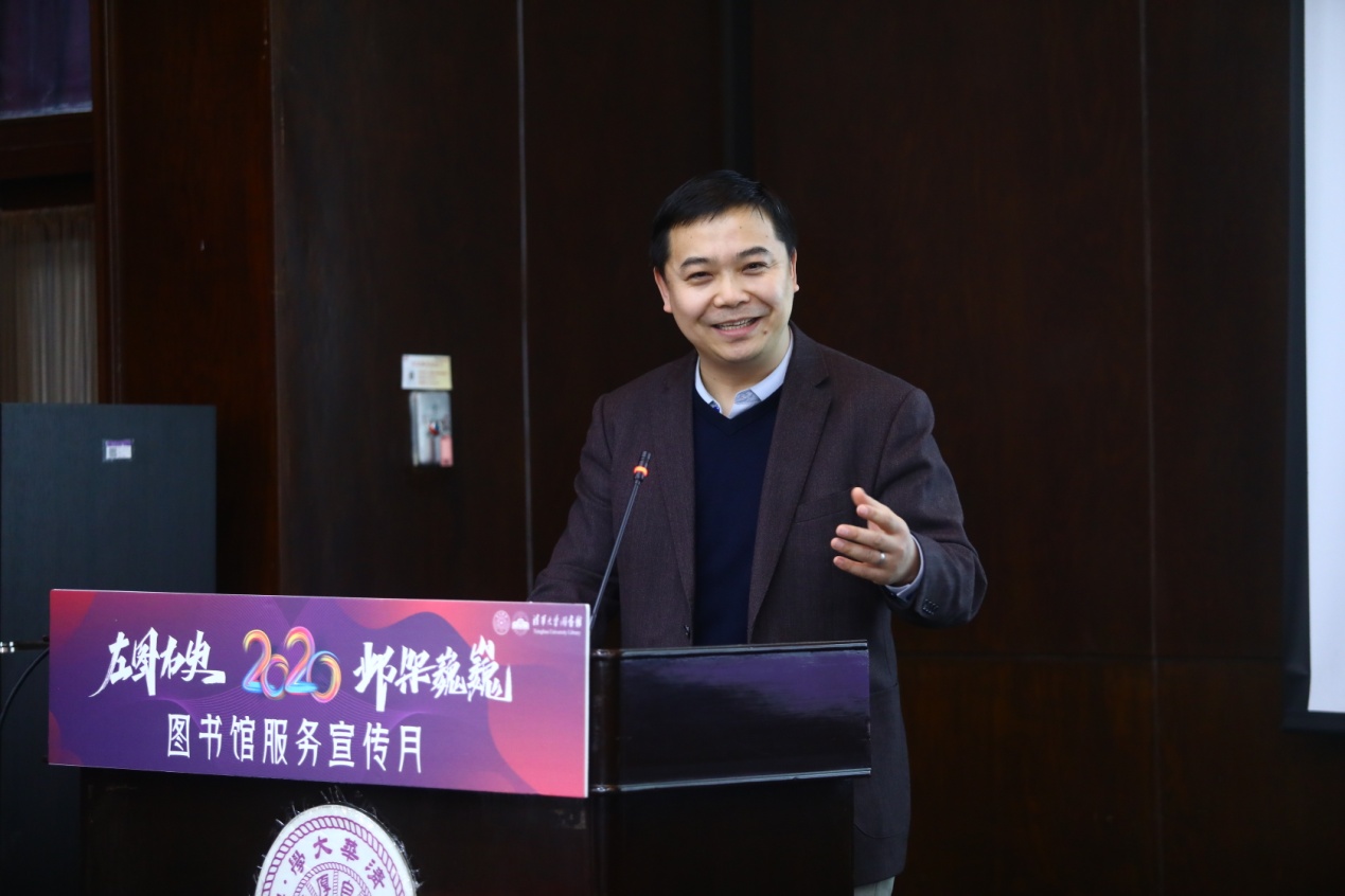 王有强表示,“专业”和“精准”是图书馆工作的两大核心。结合图书馆的建设与发展,他以“SMART”作为关键词并作出新解读,即图书馆为学校的教学提供保障(Teaching),是学校的文献资源中心(Resources)和学术支撑机构(Academic),同时图书馆也需要通过管理(Management)和专业视角(Speciality),为广大师生提供精准服务,以全新的姿态展示图书馆价值。