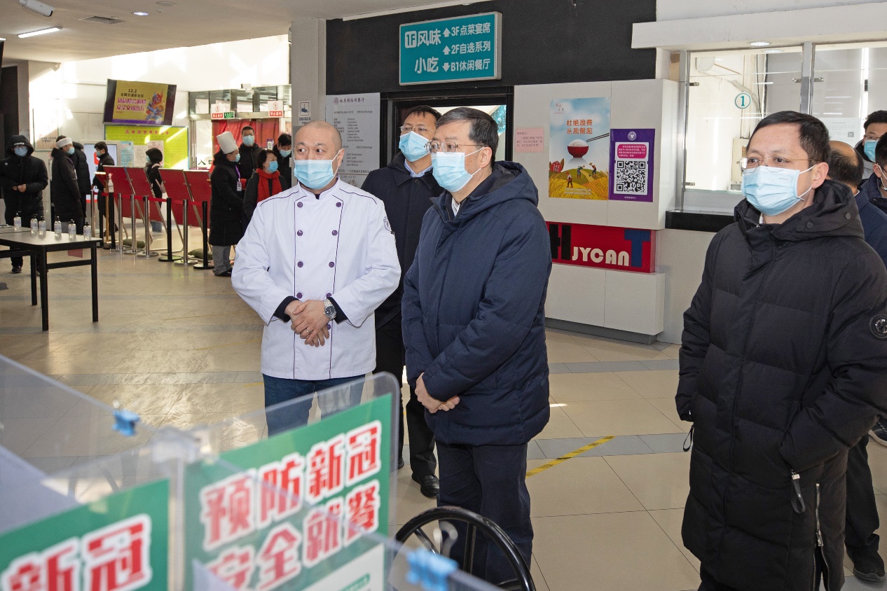 新葡萄新闻网12月31日电(记者 温兴煜 摄影 李派)12月30日上午,校长邱勇带队检查校园疫情防控工作的落实情况。党办校办、总务办、校医院相关负责人参加检查。