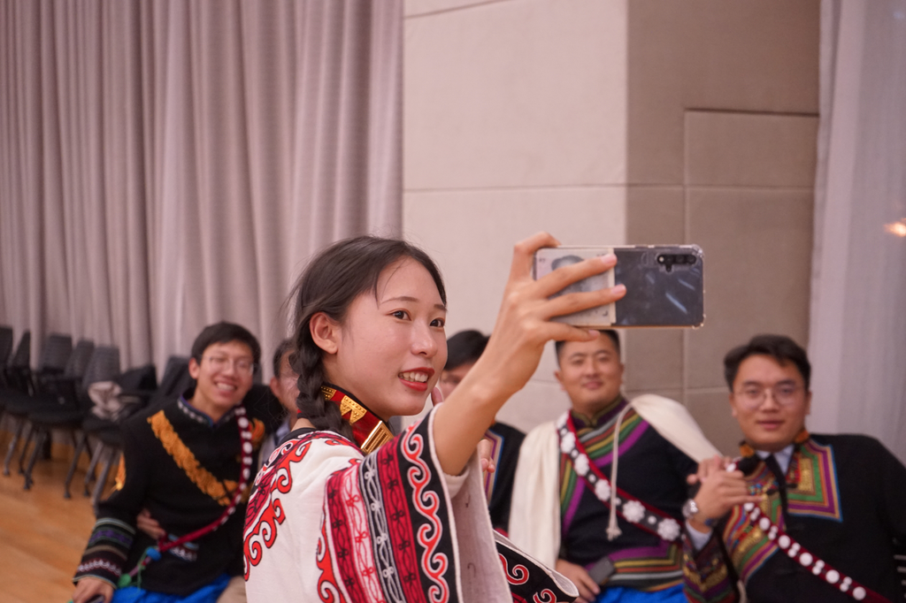 新闻学院2019级本科汉族学生邱雨诺在观看表演后表示:“上台表演的少数民族同学都身着自己民族的服装,洋溢出一种真诚的快乐。表演的同学演唱了自己民族的歌曲,虽然是用着我无法理解的语言,但我能理解歌曲中的感情,这或许就是现代生活中尤为珍贵的、那些能让你‘心头一动’的真挚。”