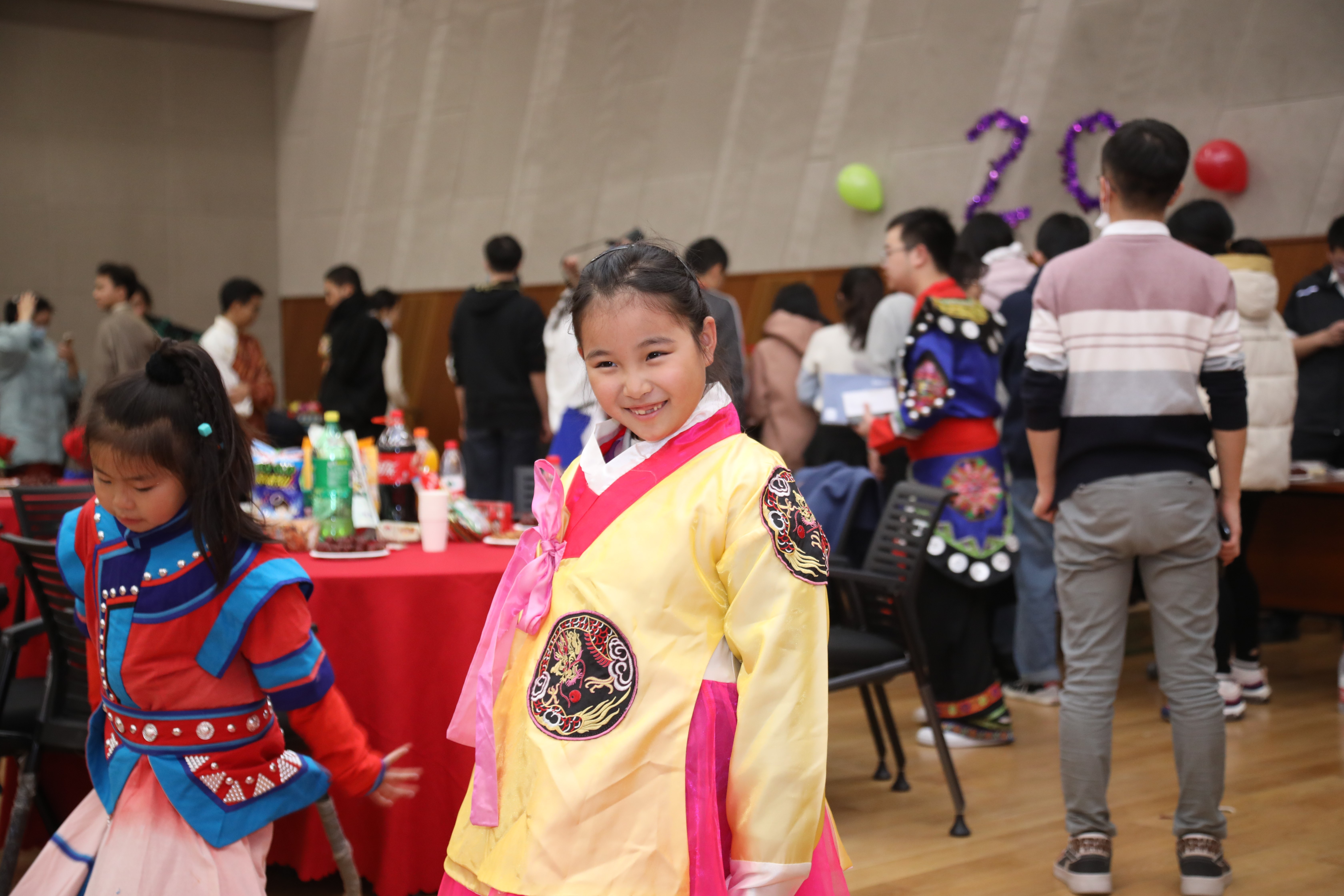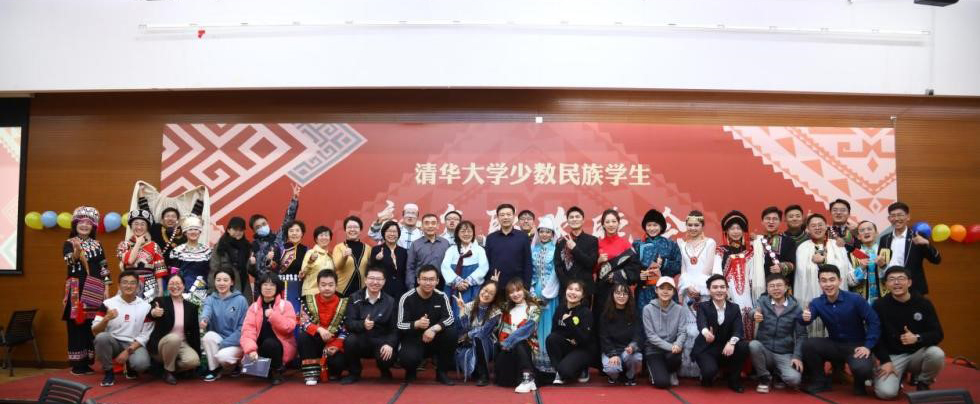 穿戴民族服装留影的学生