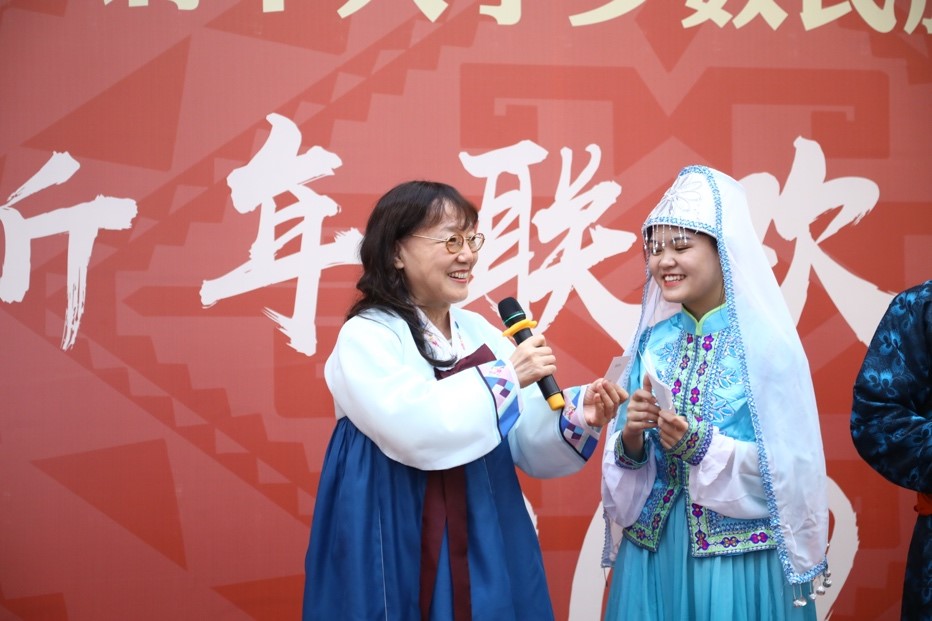 晚会最后,彝族、苗族、侗族、土家族、黎族和撒拉族的学生代表身穿本民族的服装,为观众献上了精彩纷呈的民族时装秀,朝鲜族教师代表朴英、满族教师代表吴雅茹等也参与了这一环节,观众持续不断的热烈掌声将现场气氛推向高潮。