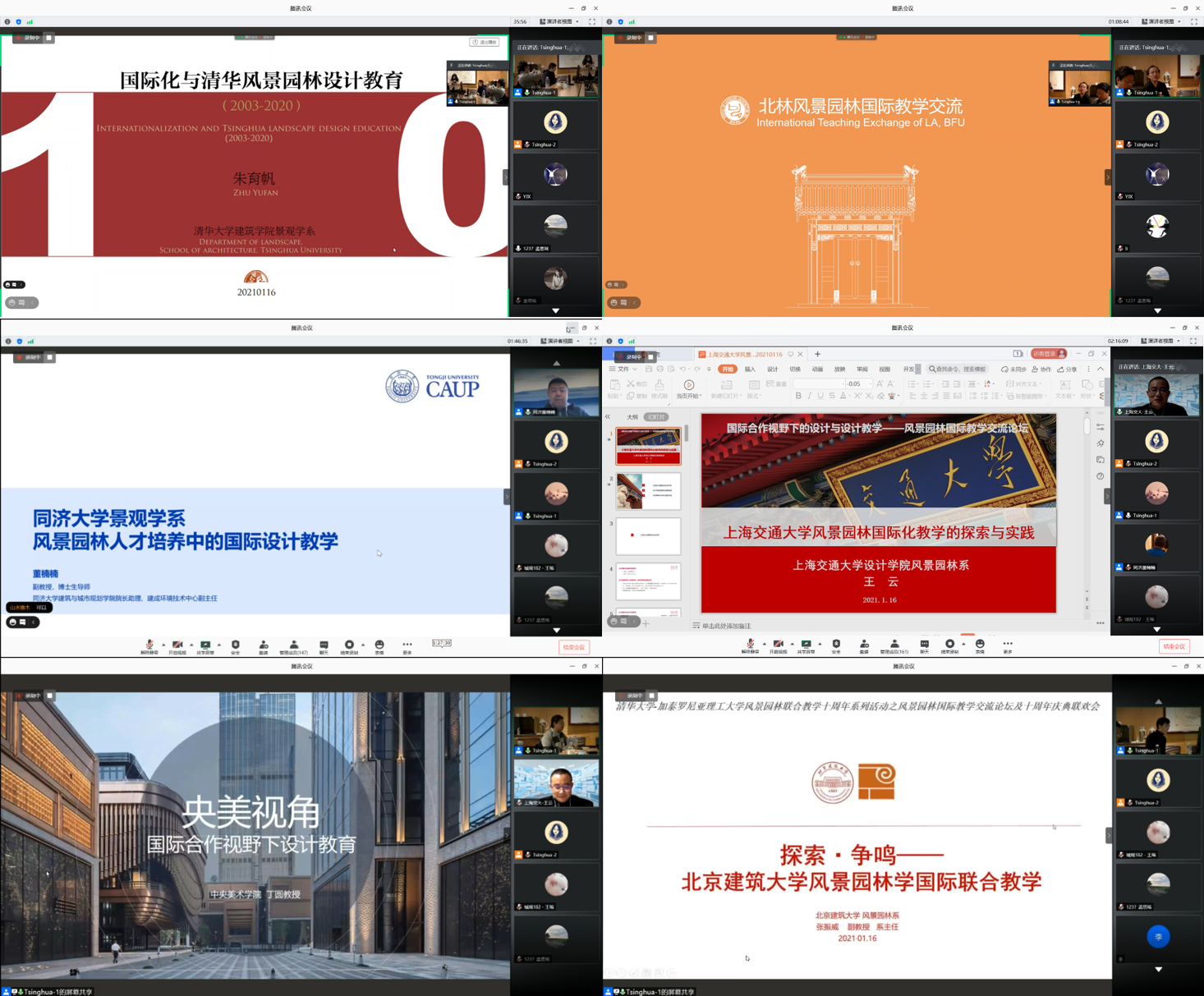 “国际合作视野下的设计与设计教学”风景园林国际教学交流论坛以联合教学十周年的经验为引,旨在促成各高校教育理念与经验方法的交流、探索疫情影响下的国际合作特征与转变。新葡萄官网AMG建筑学院景观学系副系主任朱育帆教授、北京林业大学园林学院副院长郑曦教授、同济大学建筑与城市规划学院院长助理董楠楠副教授、上海交通大学风景园林系系主任王云教授、中央美术学院景观学系系主任丁圆教授、北京建筑大学风景园林系系主任张振威副教授与会发表主旨演讲,来自全国30多个高校的近200人线上参会。