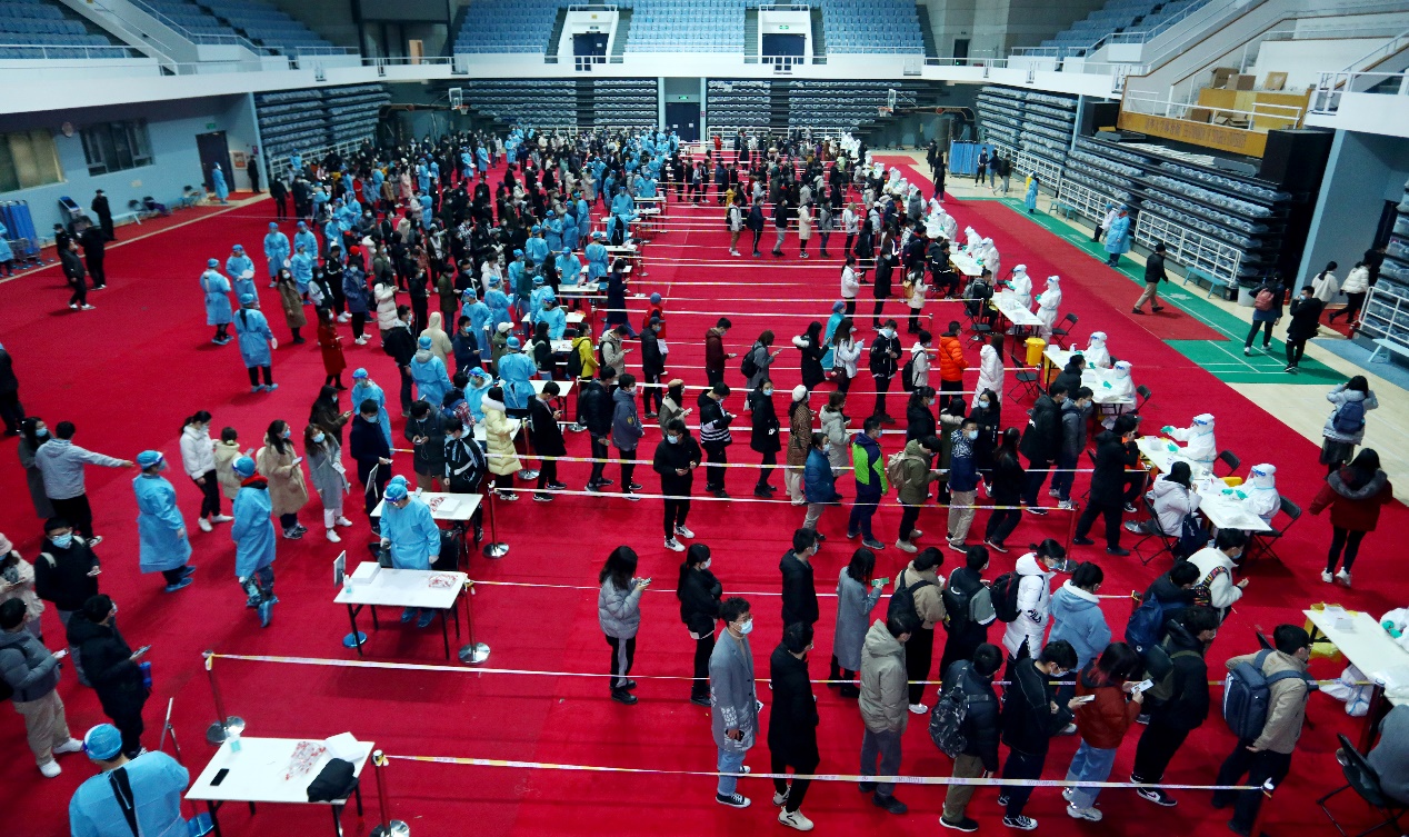 综合体育馆内核酸样本采集现场