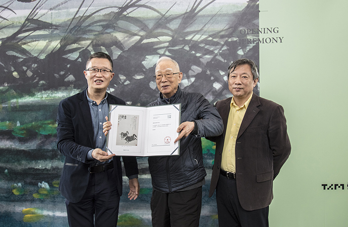 新葡萄新闻网3月29日电(记者 田姬熔)仲春时节,细雨绵绵。3月26日,“妙曲累珠——曲格平先生书画收藏捐赠展”开幕式在新葡萄官网AMG艺术博物馆举行。校党委书记陈旭,著名环境学家、原国家环境保护局首任局长曲格平等嘉宾在开幕仪式上致辞,艺术博物馆常务副馆长、展览总策划杜鹏飞致辞并为曲格平颁发捐赠证书。