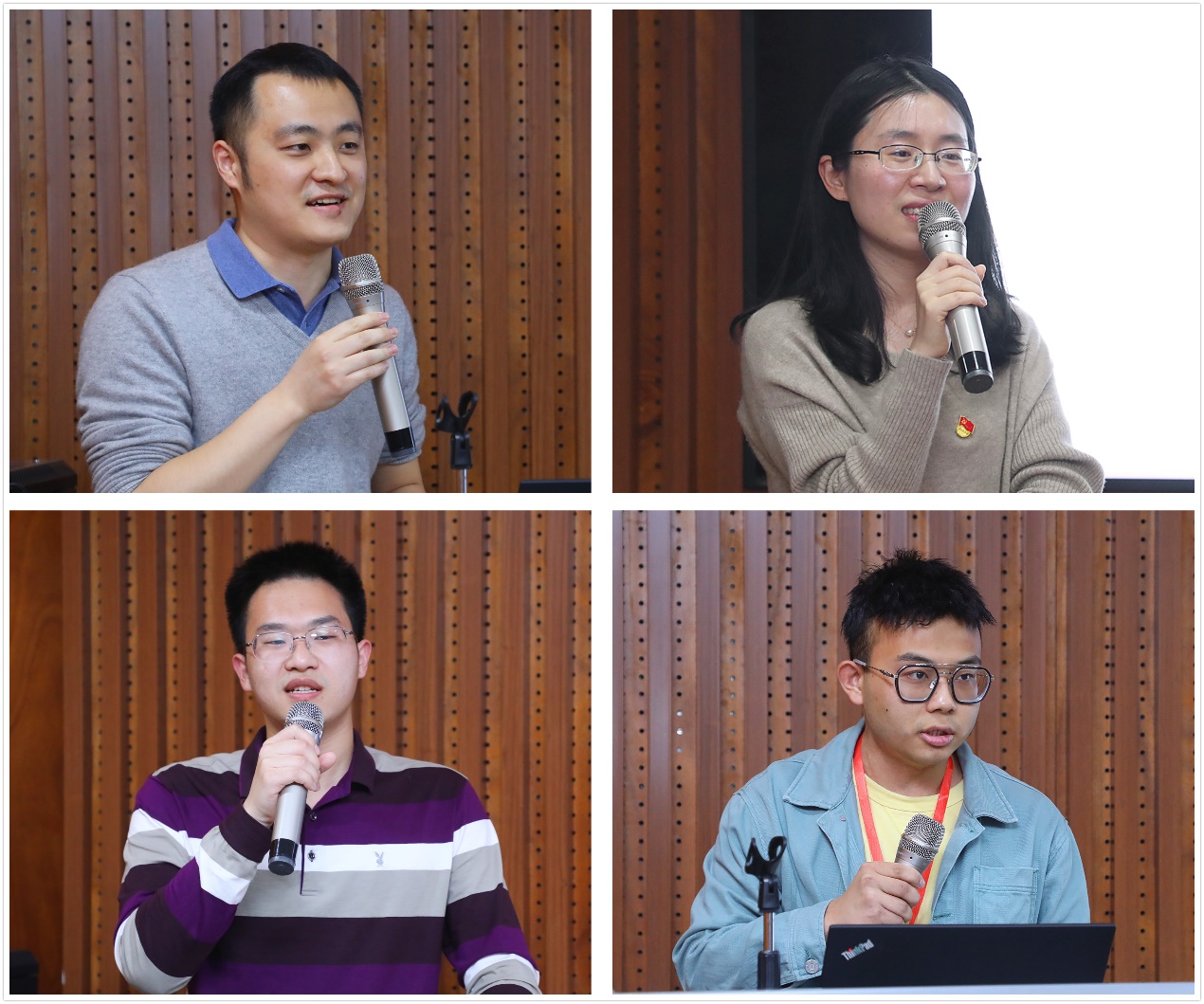 张达(左上)、兰旻(右上)分别作主题报告及新老学员(右下、左下)代表发言