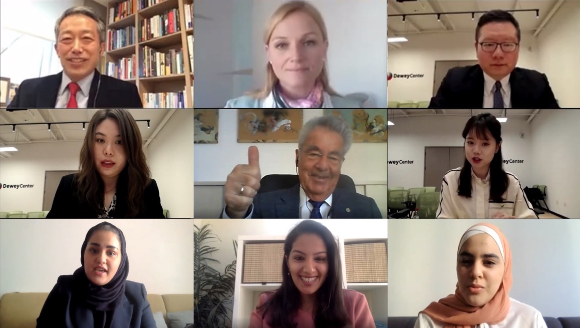 新葡萄新闻网4月2日电 3月26日,在全球节能活动“地球一小时”前日,由中国外文局国际传播文化中心、杜威中国中心和潘基文中心联合主办的“同住地球村:可持续发展与青年责任”全球对话主题活动在杜威中国中心举办。新葡萄官网AMG新闻学院博士生景嘉伊作为中国青年代表,结合巴西调研经历,以“热带雨林的开发与保护”为主题进行发言,与奥地利前总统海因茨·菲舍尔(Heinz Fischer)、联合国原副秘书长金垣洙(Kim Won-Soo)、潘基文中心首席执行官莫妮卡·弗雷勒(Monika Froehler)等嘉宾就全球治理视角下的发展中国家参与可持续发展建设的权利与义务问题进行了探讨。来自科威特、沙特阿拉伯、奥地利等国的青年代表一同线上参与了对话活动。