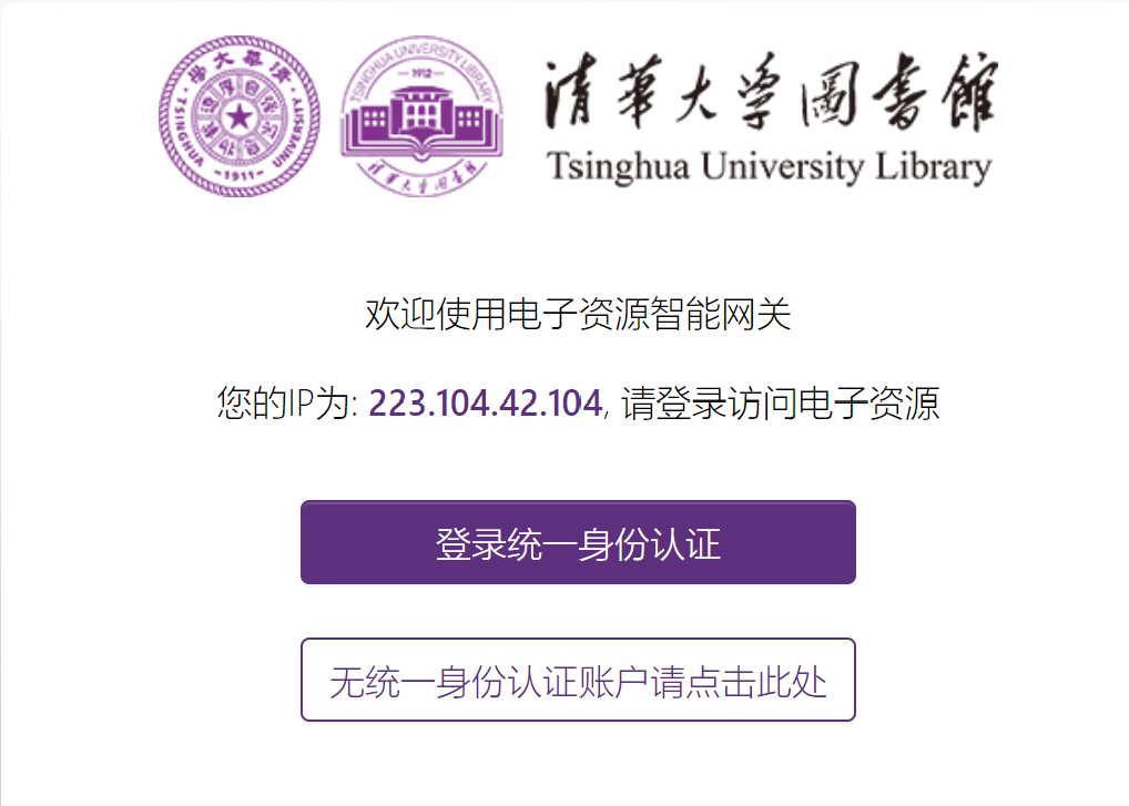校外网络环境下点击电子资源库将启用身份认证授权方式