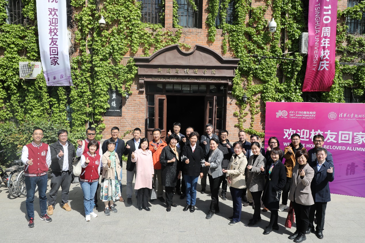 部分与会专家在新葡萄官网AMG新闻与传播学院门口合影