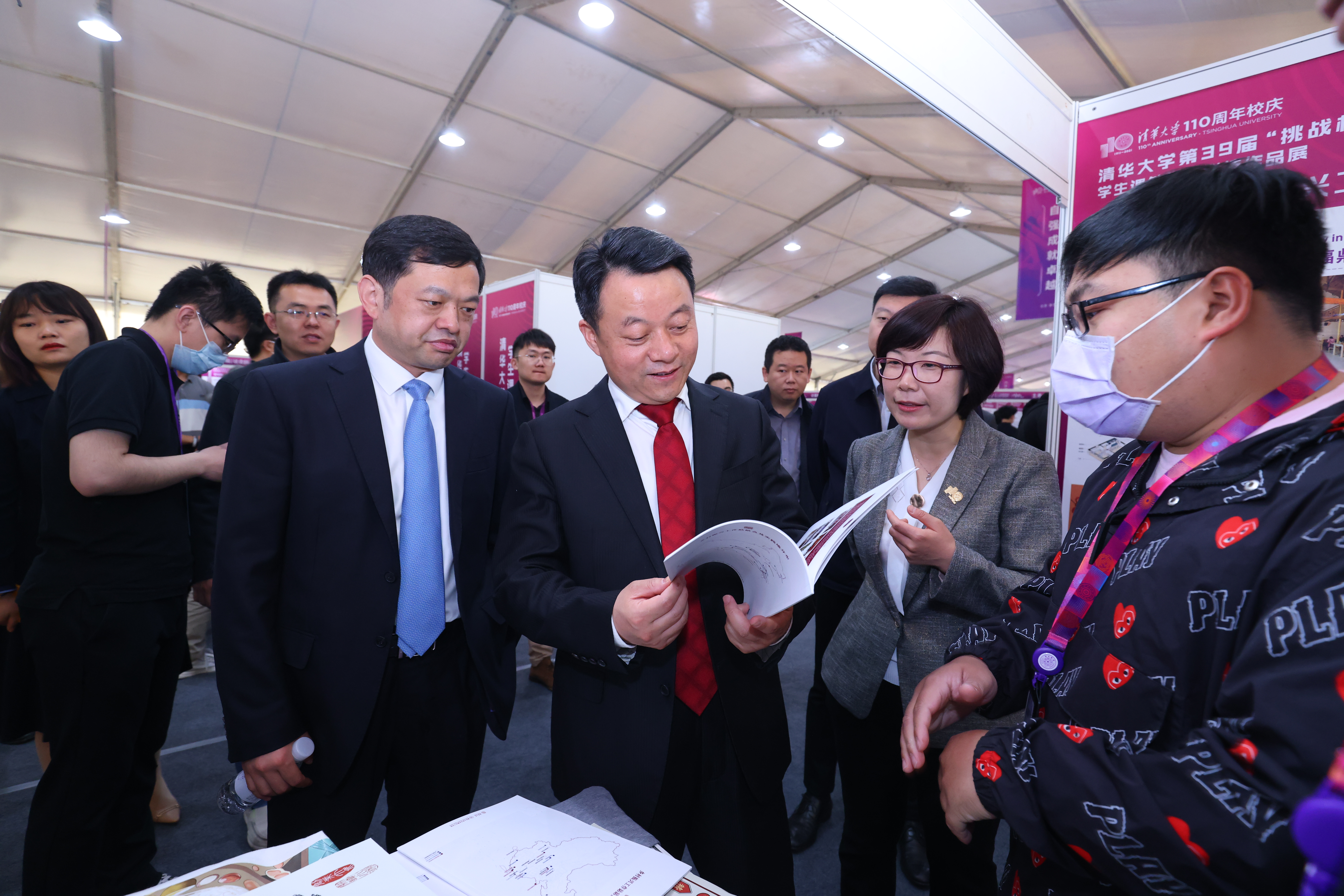 开幕式结束后,校领导和来宾参观了“挑战杯”学生课外学术科技作品展。