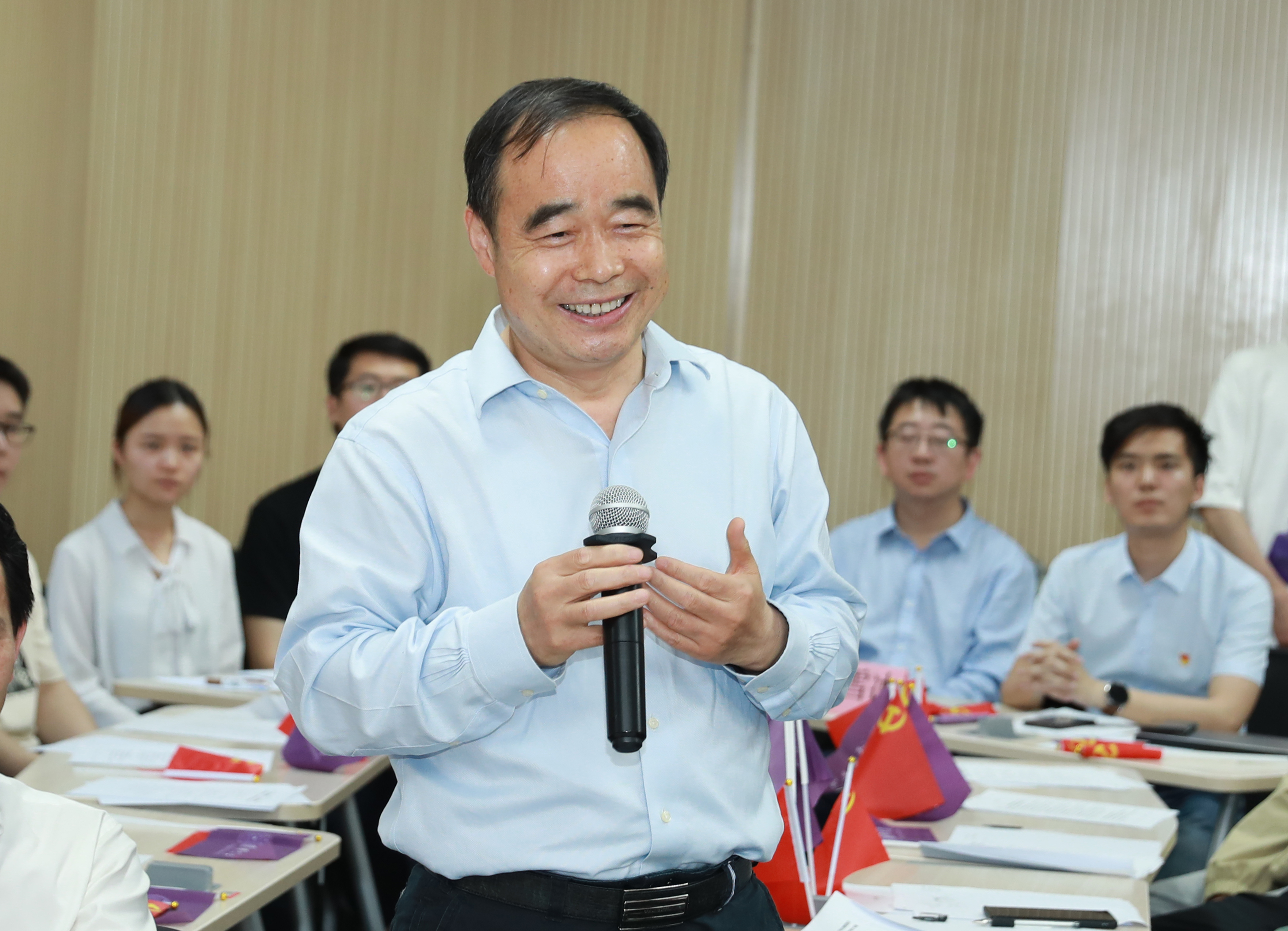 新葡萄新闻网5月25日电 5月20日至22日,全校共100个本科生党团支部、党课学习小组在第四教学楼和第六教学楼,围绕“百年接力、强国有我”主题集中举办了本学期第二批主题党团日活动。副校长吉俊民、郑力,校党委副书记向波涛及各院系部处相关负责同志深入各个党团班集体,围绕党史学习教育相关话题与同学们进行深入交流。