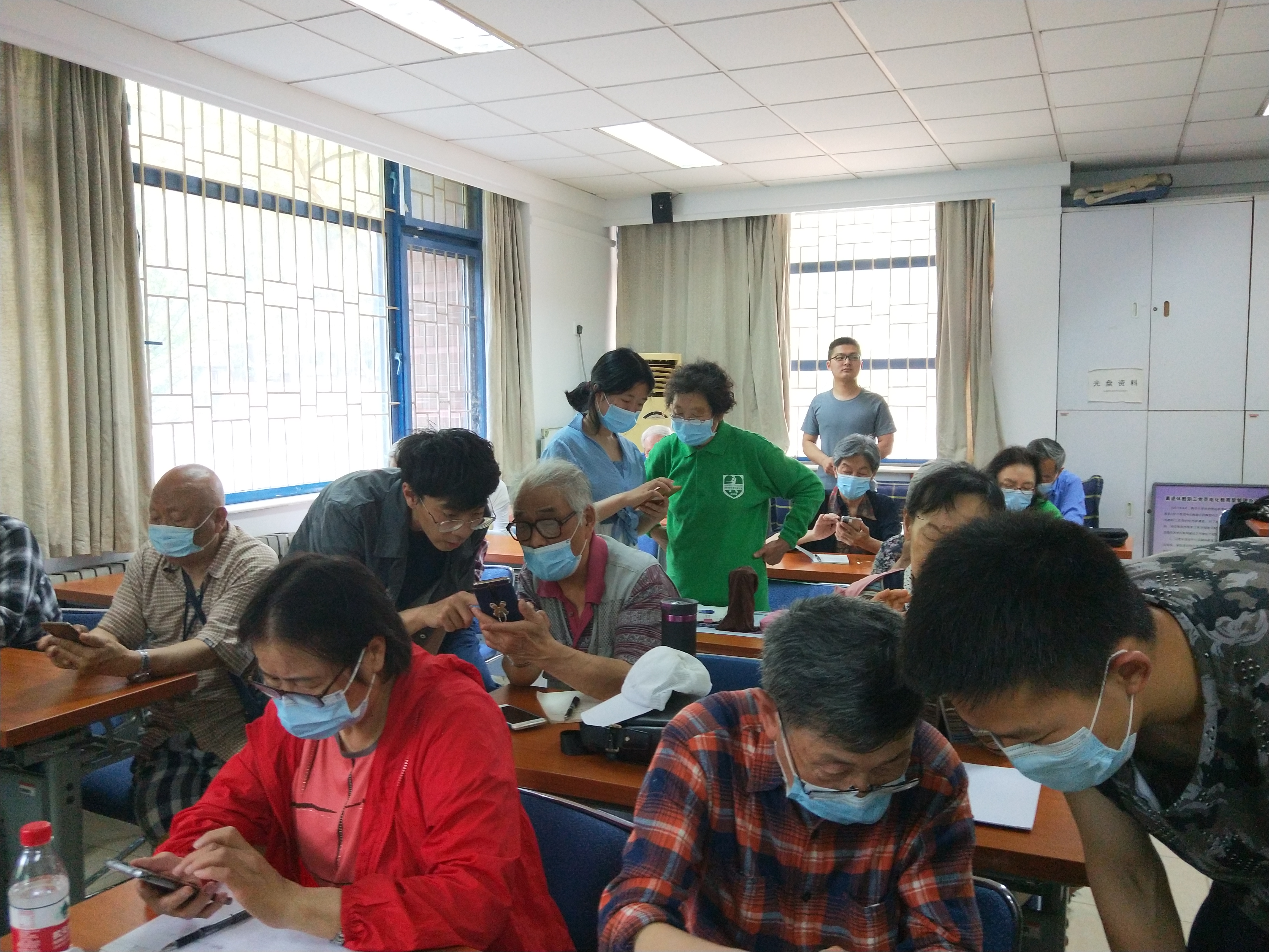 老科协办公室和信息化中心用户服务团队的志愿者们之前已在老科协会员范围内组织过两次培训,具有丰富的经验。他们担任本次培训的指导教师,培训内容包括:手机设置,常用功能介绍,微信交流中文字、语音、图片、视频、群聊、接龙报名等使用方法,微信支付家庭生活中的水电、煤气、电话费交纳,位置获取与打车方法,网上预约挂号、网上购物、北京健康码和视频会议软件的使用方法,以及网络安全等。