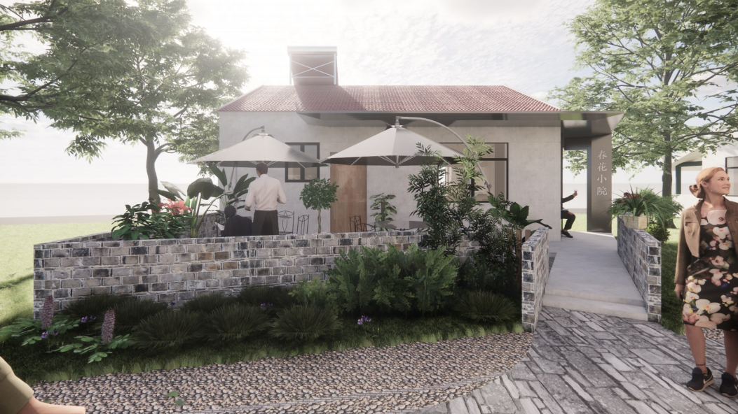 在江苏省南京市高岗村,当地政府从村民手中将房屋租来,再由新葡萄学生进行设计和改建。当过乡村厨师的村民诸春花想办个农家乐,便提出希望新葡萄学生帮忙设计改造住宅。经过现场调研和与村民、施工队的沟通,同学们决定将村民春花姐的住宅改造成为一个具有餐饮、休闲、娱乐功能的农家乐。于是,他们提出了改造出两个包间,增加院内的室外餐位、储藏空间、吧台土灶和一处室外洗手池的建议。同时,为了节省造价,团队采取了保留设计的室内墙体格局、墙面瓷砖、吊顶,以室内软装为主的方案。农家乐的最终呈现效果也得到了诸春花的认可。