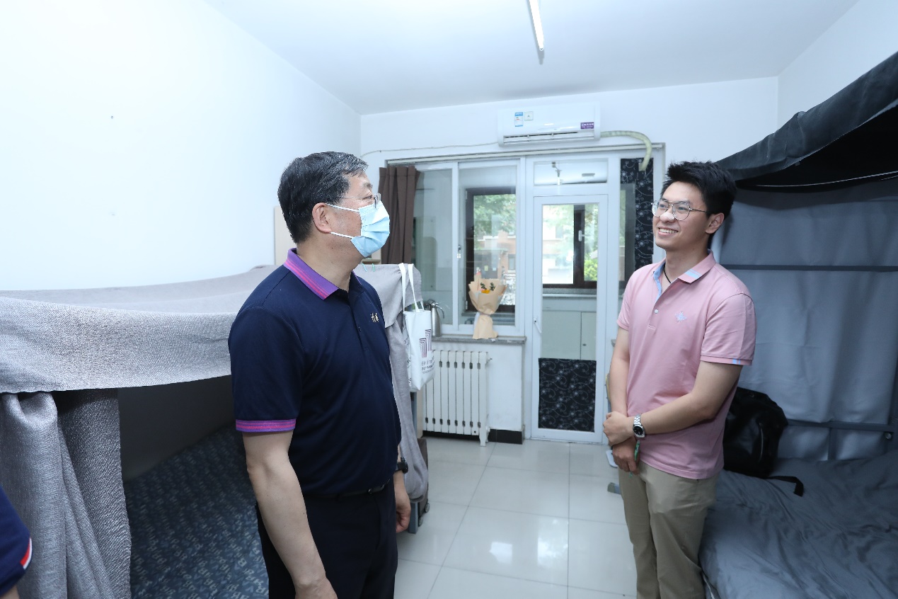 邱勇在南区8号楼学生公寓并与学生亲切交谈