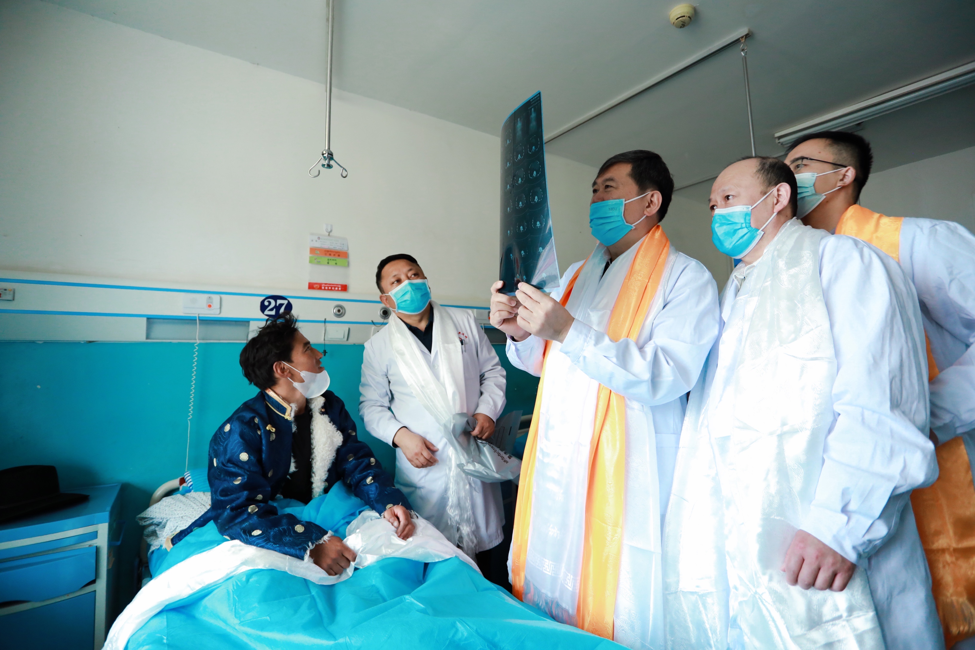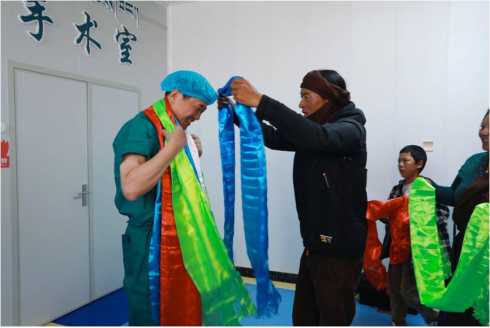 家属排队为结束手术的董家鸿献上哈达