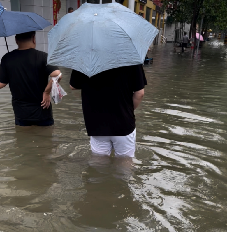23日早晨6点,一通紧急电话唤醒了本就睡不踏实的肖源睿:牧野湖出现漫堤险情!肖源睿闻言,穿上衣服就往区政府赶,到区政府后,他与已经完成集结的办公室同志们一道,乘车直奔牧野湖。车开出区政府不到1公里,积水就已没过车轮,无法继续行驶。前方是滔滔洪水,后方是人民群众,他们当机立断,决定步行淌水继续前进。百十来步后,浑浊的洪水已快没至腰间,但他们不能也绝不可能掉头。
