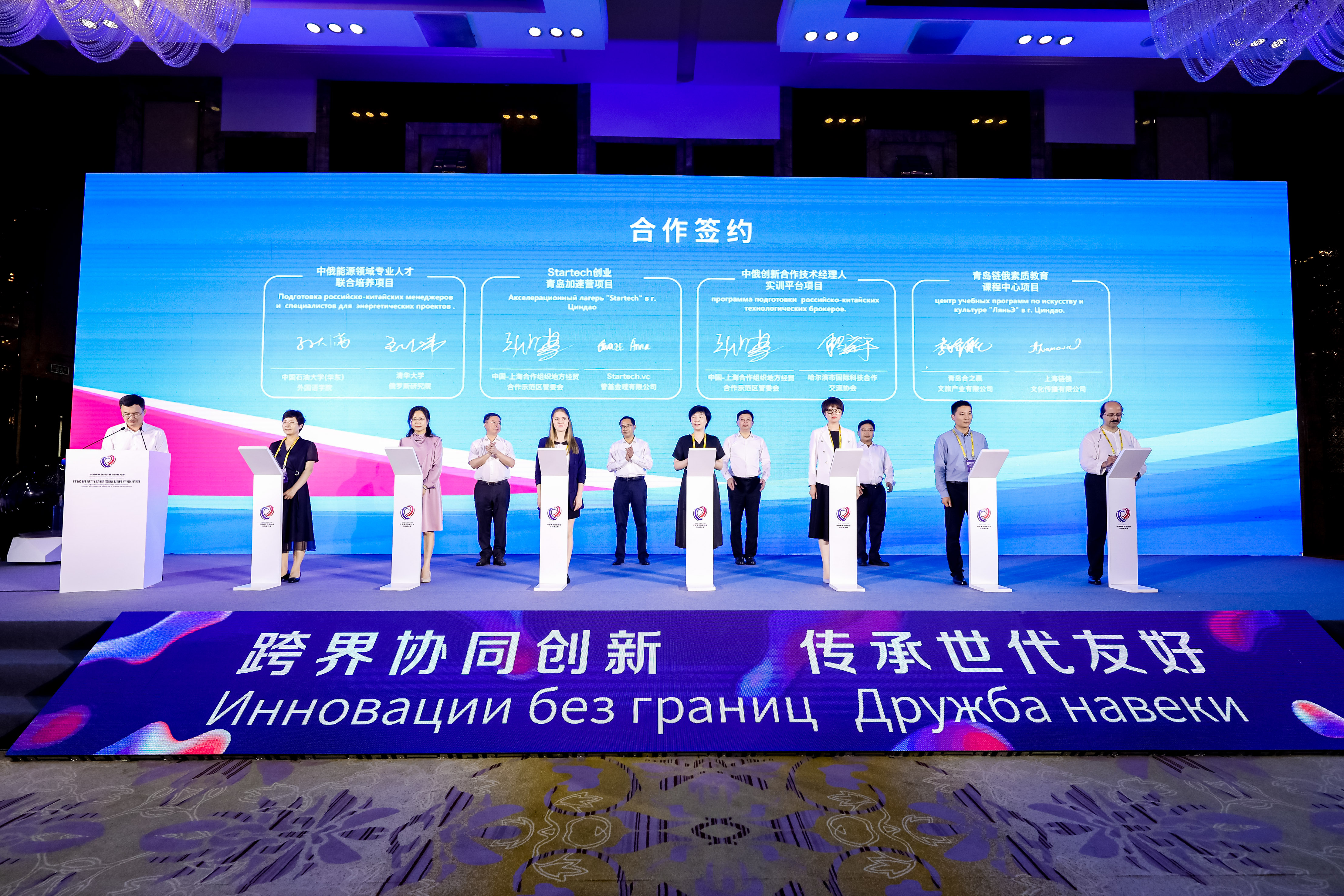 开幕式上还举行了“青俄汇-中俄科技创新合作中心”揭牌仪式和一系列项目签约。Startech俄罗斯创业项目青岛加速营、上合示范区中俄技术经理人联合实训、中俄能源领域专业人才联合培养、青岛链俄素质教育中心等项目于当天启动。上合示范区海洋合作部部长郑师表示,科技创新是当前中俄两国最富前景的合作领域之一,上合示范区借举办中俄青年创新创业与创意大赛之机,参与到“中俄科技创新年”的核心活动中来,将为示范区、乃至青岛市开启对俄交流与合作的大门。