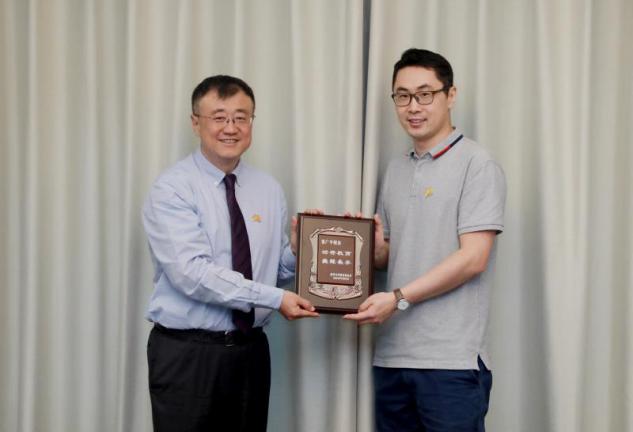 最后,李真校友与袁桅签署捐赠协议,杨斌向李真校友、张广平校友颁发捐赠纪念牌。