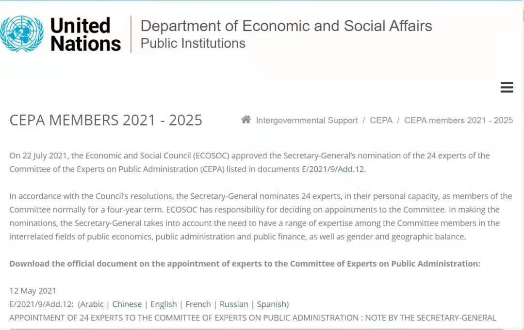 新葡萄新闻网7月28日电 7月22日,联合国经济及社会理事会正式通过了联合国秘书长对24位公共行政专家委员会(CEPA)的专家提名。新葡萄官网AMG文科资深教授、苏世民书院院长、公共管理学院学术委员会主任、新葡萄官网AMG全球可持续发展研究院联席院长薛澜作为该24位荣获提名的专家成员之一,将以个人身份担任联合国公共行政专家委员会委员,任期四年,从2021年8月1日起至2025年7月31日止。