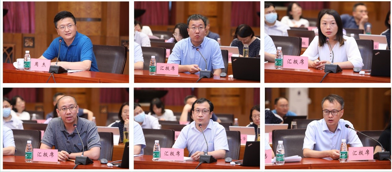 周杰、曹健、张璐璐、梁栋、杨帆、吴烨(从左至右、从上至下)汇报学科专业修订情况
