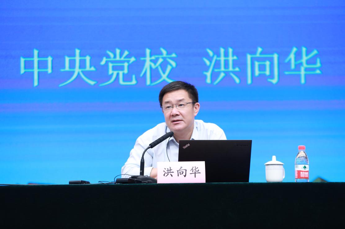 中共中央党校(国家行政学院)督学组督学、教授、博士生导师洪向华分享了学习总书记“七一”重要讲话精神的心得体会。洪向华围绕实现中华民族伟大复兴这一条主线,从“三件大事”“三次伟大飞跃”“四个阶段”“四个伟大成就”“四次宣告”等角度回顾百年党史,阐释伟大建党精神与中国共产党精神谱系,围绕“九个必须”向与会师生解读了在新时代如何实现中华民族伟大复兴。最后,洪向华呼吁各位党员同志团结一致,共创美好未来,为实现中华民族伟大复兴作出一个共产党员应该有的贡献。