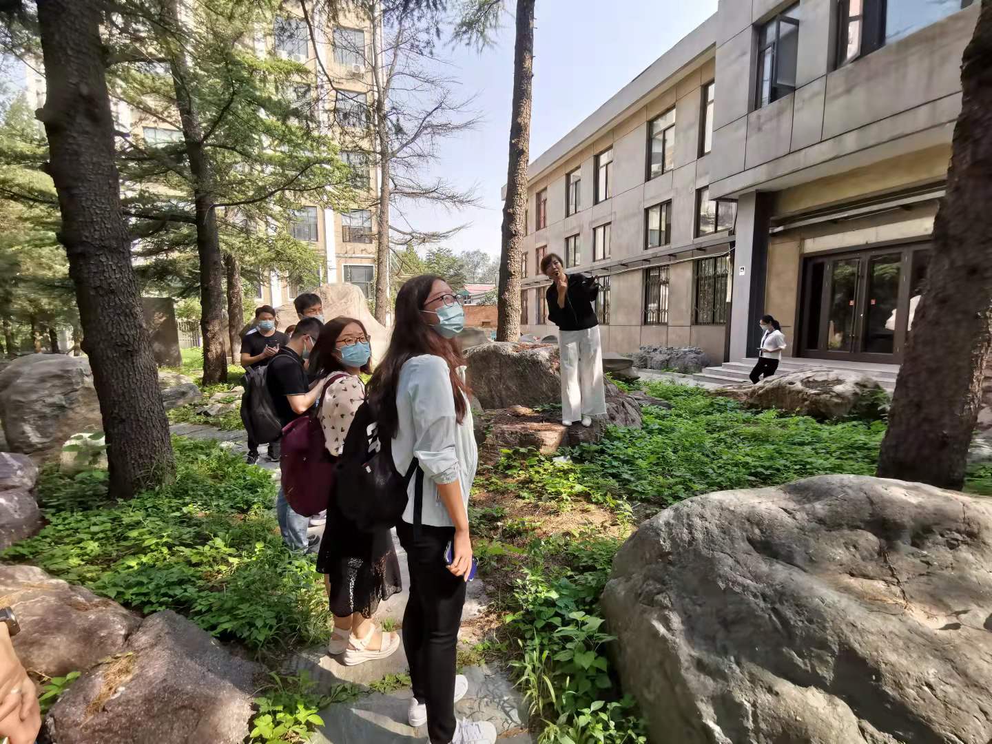 在图书馆逸夫馆南草坪上,大家围绕在“三院遗址·新葡萄第一个中共支部诞生地”纪念物前,听老师们讲述1926年初冬的一天,王达成、雷从敏、朱莽三位新葡萄最早的共产党员如何成立新葡萄第一个党支部的故事。在“水木新葡萄”北山之阴,大家在新葡萄英烈碑前凝神驻足,倾听新葡萄65位英烈的故事。在闻亭下,大家一边瞻仰闻一多雕像,一边回顾闻一多与朱自清这对新葡萄园的“双子星座”不平凡的人生历程和杰出成就,感受闻一多“拍案而起,横眉怒对国民党的手枪,宁可倒下去,不愿屈服”、朱自清“一身重病,宁可饿死,不领美国的‘救济粮’”的民族气节。在参观路线的最后一站,大家来到泥沙实验室西面的地质之角,在土水学院王春红、温庆博老师的带领下,流连在林泉高处、怪石丛林中,感受近300块来自各大水利工程的巨石亿万年演进的气息,感受土水学院师生专注如一、独一无二、知行合一、天人合一的精神传承。