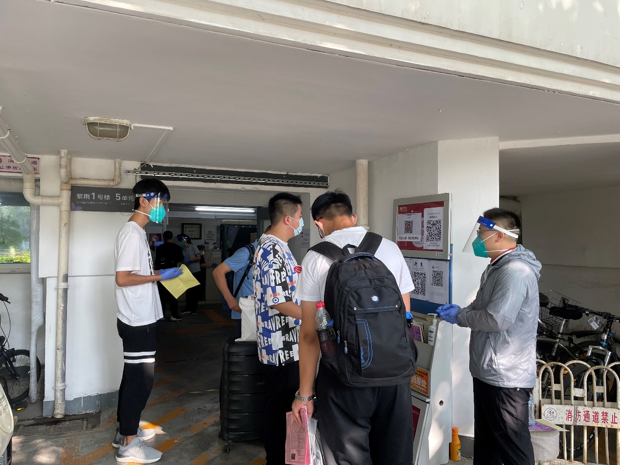 为了在疫情防控要求下顺利完成新生报到,学校组织各院系提前联系新同学完成线上审核,并在入校报到后组织全体新生开展核酸检测。食堂隔档就餐、出入楼宇扫码、每日测温、发放“防疫小贴士,严格防疫举措与贴心服务照顾到新生的方方面面。