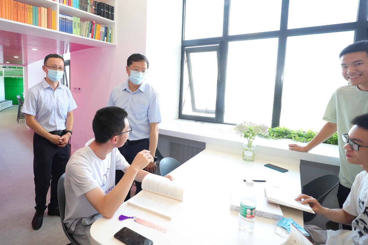 邱勇一行还来到刚改造后投入使用的C楼学生课外活动空间,看望正在参加课外活动的学生。