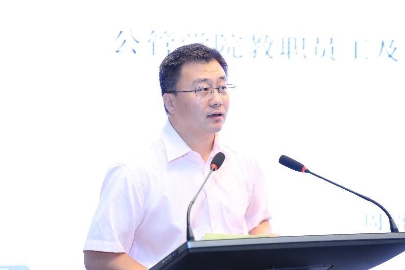 在党政工作通报环节,院长助理慕玲通报秋季学期教学工作安排,党委副书记兼副院长谢矜通报本学期党委工作和工会工作重点内容,朱旭峰通报国际交流和国际项目情况,副院长邓国胜通报今年科研经费、申请课题等方面情况。