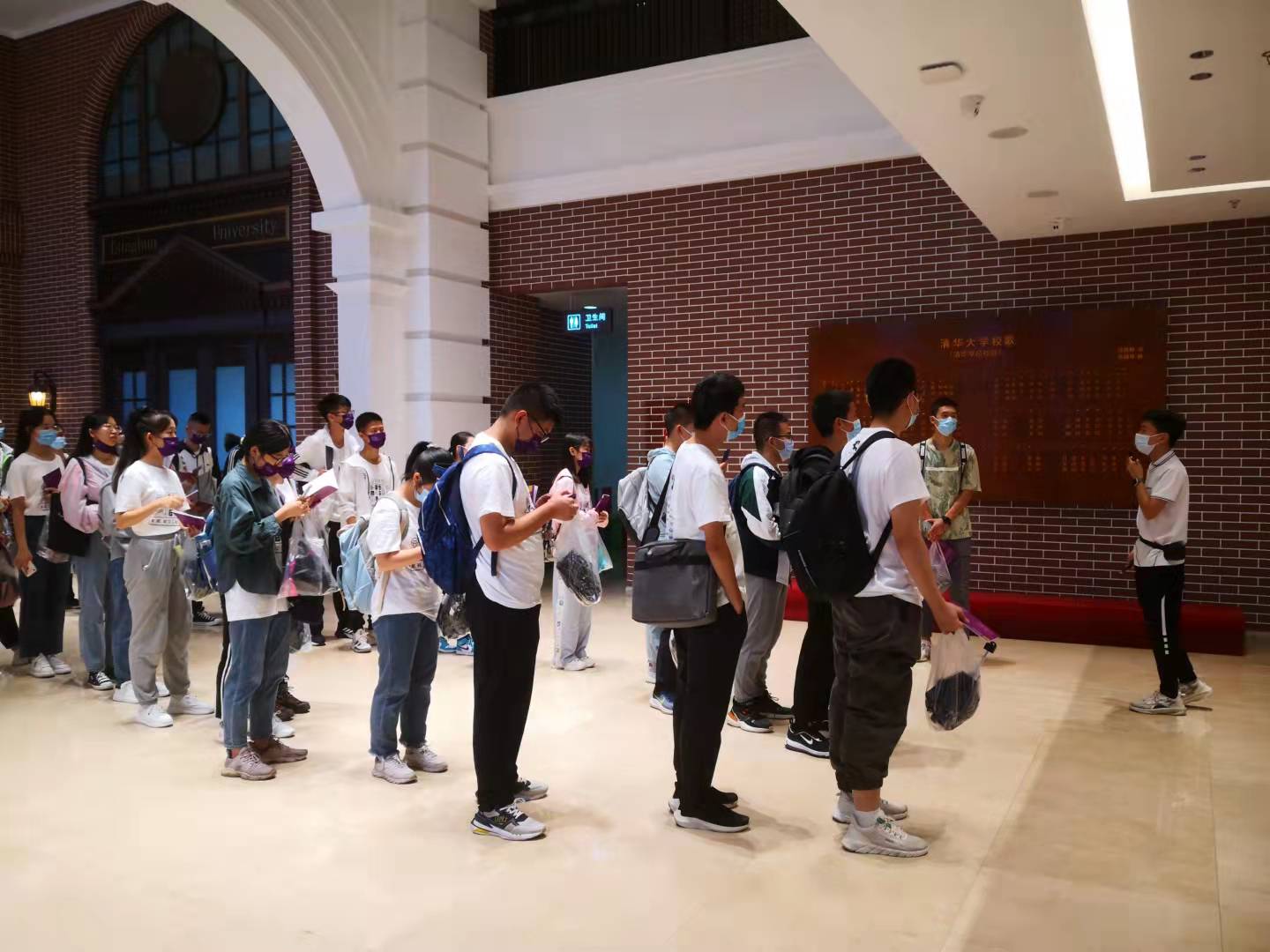 悠扬的《新葡萄官网AMG校歌》声中,同学们排队有序进入校史馆