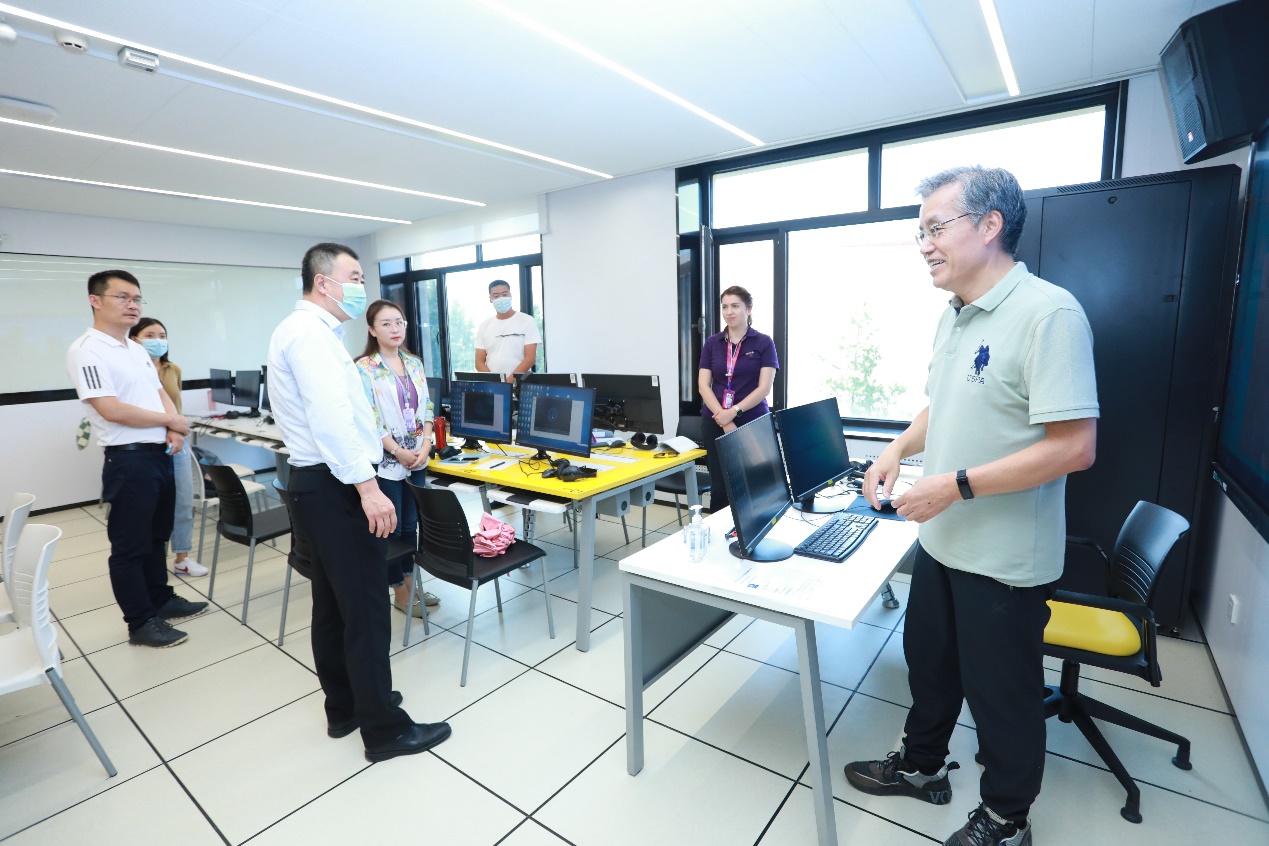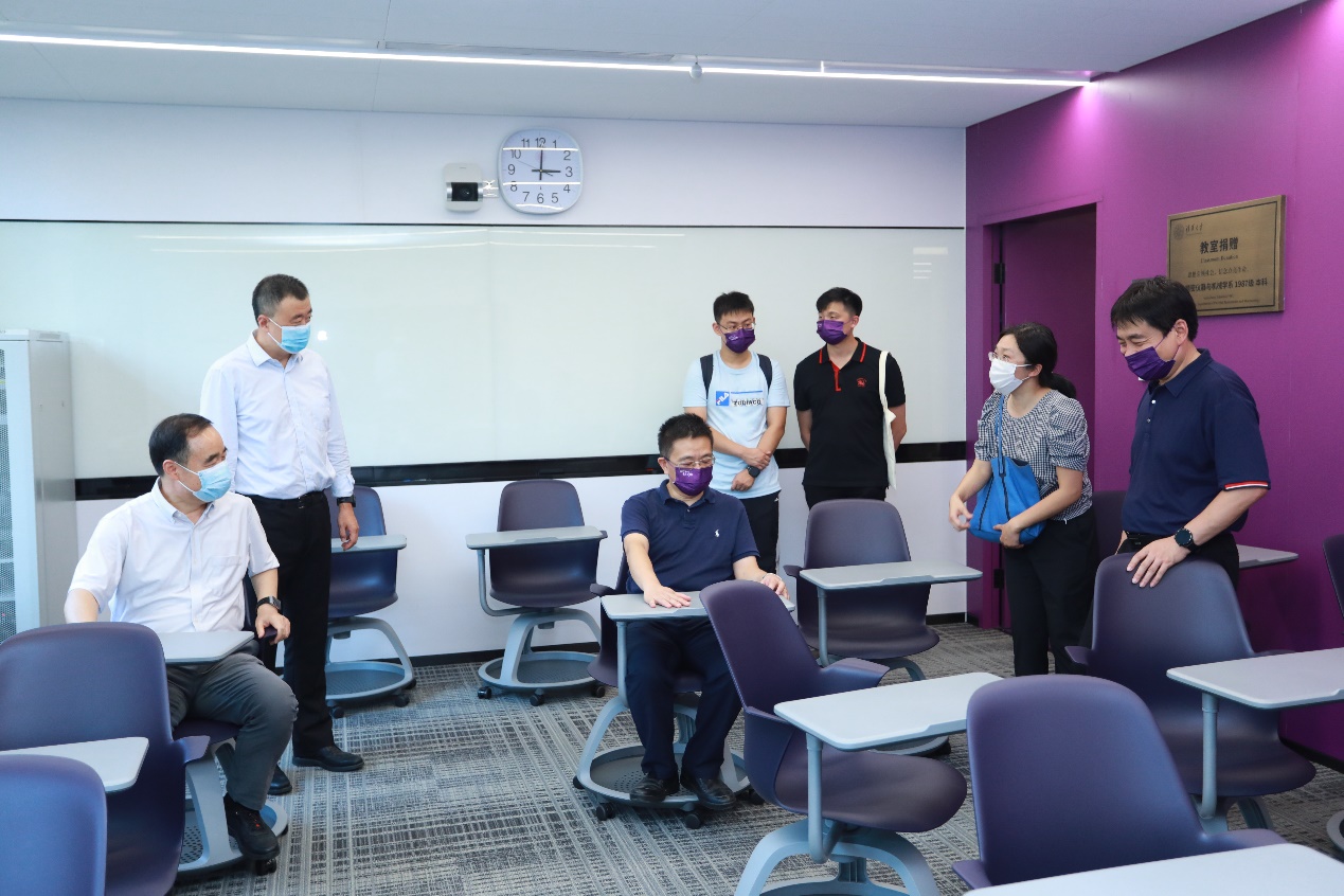 吉俊民、杨斌、彭刚对教室内新设备使用、教学楼外围环境建设等问题进行了细致检查,并进行了现场工作部署。