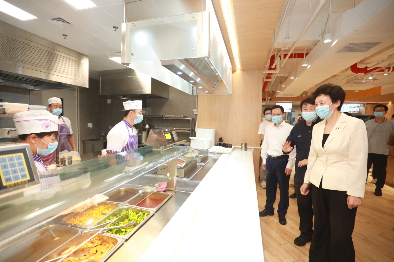 随后,陈旭一行来到双清园食堂,逐层查看就餐区的卫生环境、就餐秩序,来到售餐口详细了解菜品种类、餐品价格、餐品保障等服务情况。