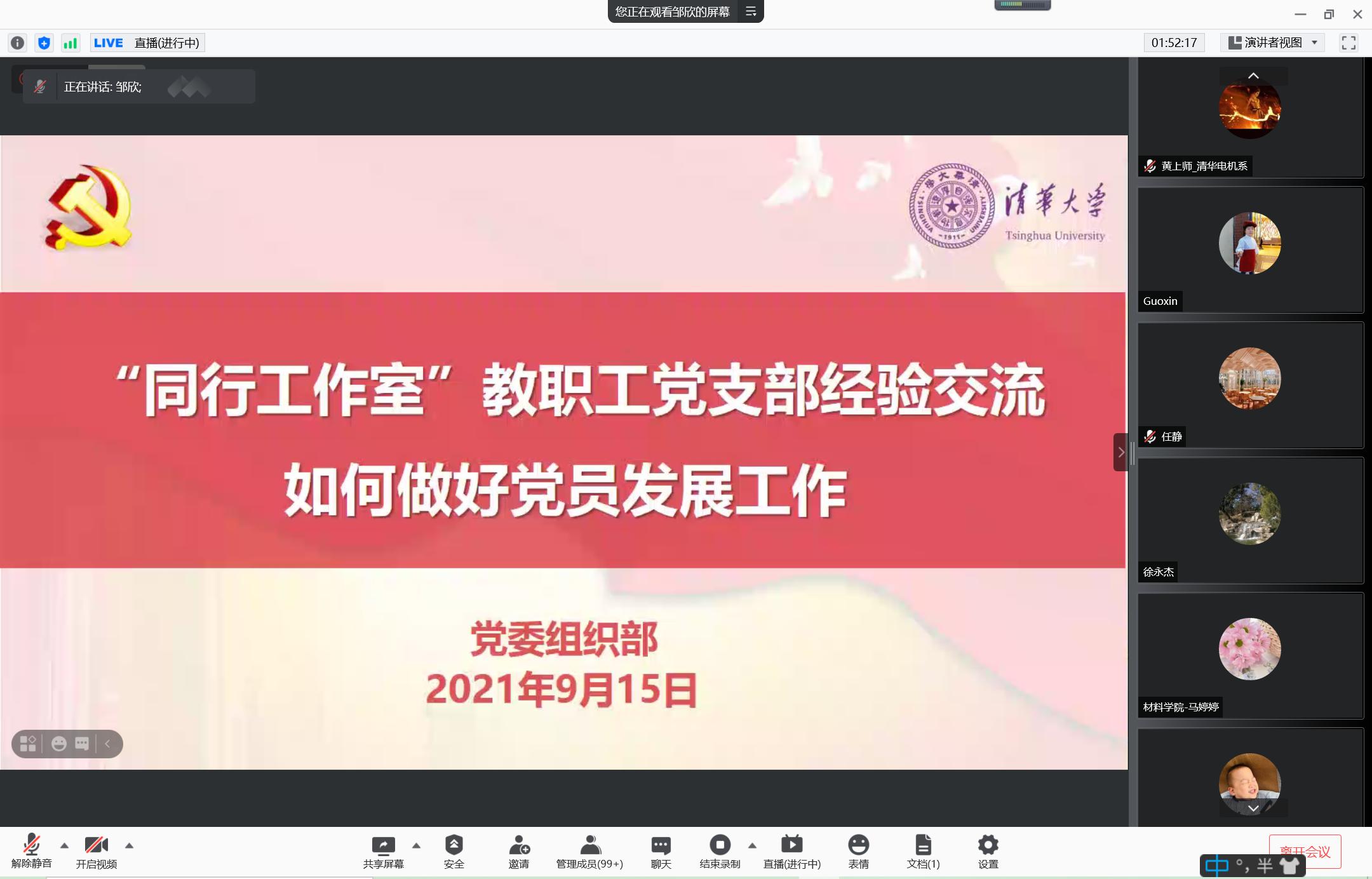 组织部在线举办“同行工作室”教职工党支部工作经验交流会