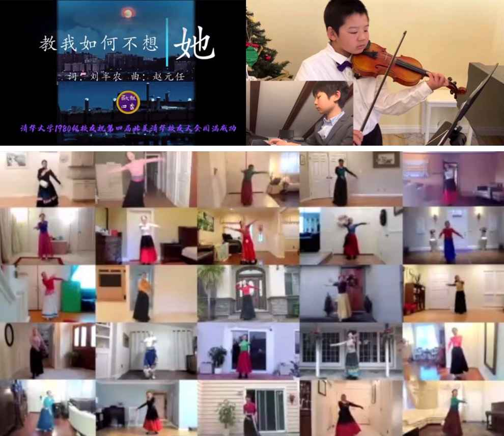 另外,1980级校友合唱团制作的《叫我如何不想她》合唱视频,北美新葡萄舞蹈队制作的《我们的山寨》舞蹈视频,和中美欧三地六位校友及孩子们用六种乐器演奏的爱尔兰民歌《漫步莎莉园》视频在候场和散场时播放,增添了相聚的氛围。