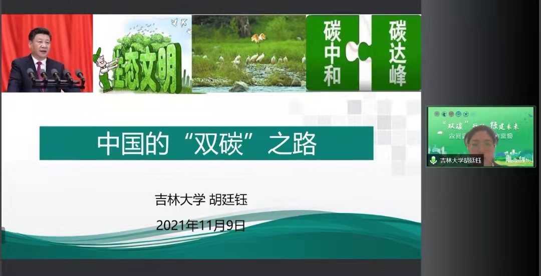 吉林大学博士生讲师团讲师胡廷钰以“中国的‘双碳’之路”为题,对“双碳”目标的概念内涵、发展演变、实现路径和风险挑战进行了解读。她认为,当前的“双碳”目标充分体现我国低碳发展的决心和信心,彰显大国担当,受到国际社会广泛认可与高度赞誉。实现“碳达峰、碳中和”是一场广泛而深刻的社会经济系统性变革,对我国而言,机遇与风险并存,任重而道远。