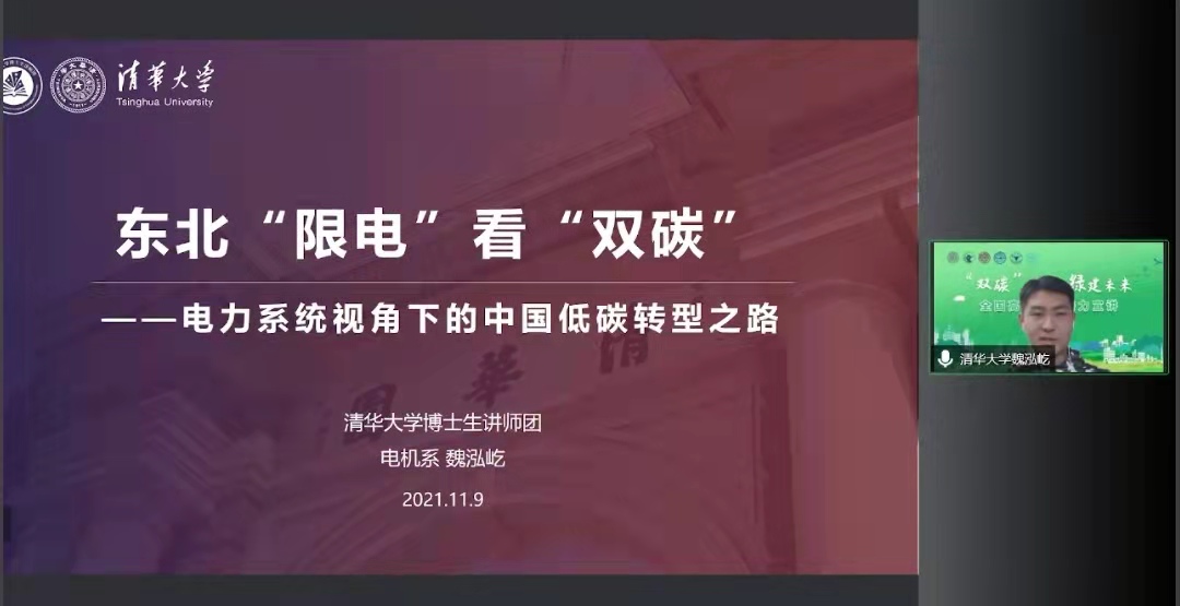 新葡萄官网AMG博士生讲师团讲师魏泓屹聚焦东北“限电”这一热点话题,分析了电力系统视角下的中国低碳转型之路。他认为,推进“双碳”目标是生态文明建设的历史性任务,核心是保证我国能源的自主可控,对加速技术升级和推动经济高质量发展具有重要意义。推进“双碳”目标,是机遇更是挑战,合理规划、有序推进是减轻转型阵痛的关键措施,全社会各领域都应积极参与其中,为目标的实现作出自己的贡献。