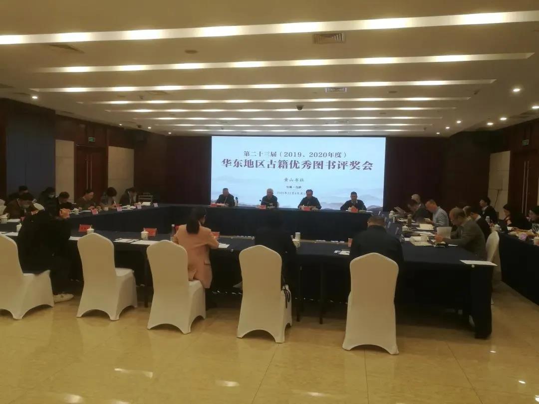 本次会议由黄山书社承办,上海古籍出版社、上海辞书出版社、中西书局、凤凰出版社、黄山书社等15家华东地区古工委成员/观察员单位出版社社长、总编辑、总编办主任等参加评奖会。共有18家出版社2019年度120种、2020年度111种图书参评,最终评选出2019年荣誉奖3种,特等奖10种,一等奖26种,二等奖53种,古籍优秀通俗读物奖10种;2020年度特等奖10种,一等奖26种,二等奖48种,古籍优秀通俗读物奖9种。