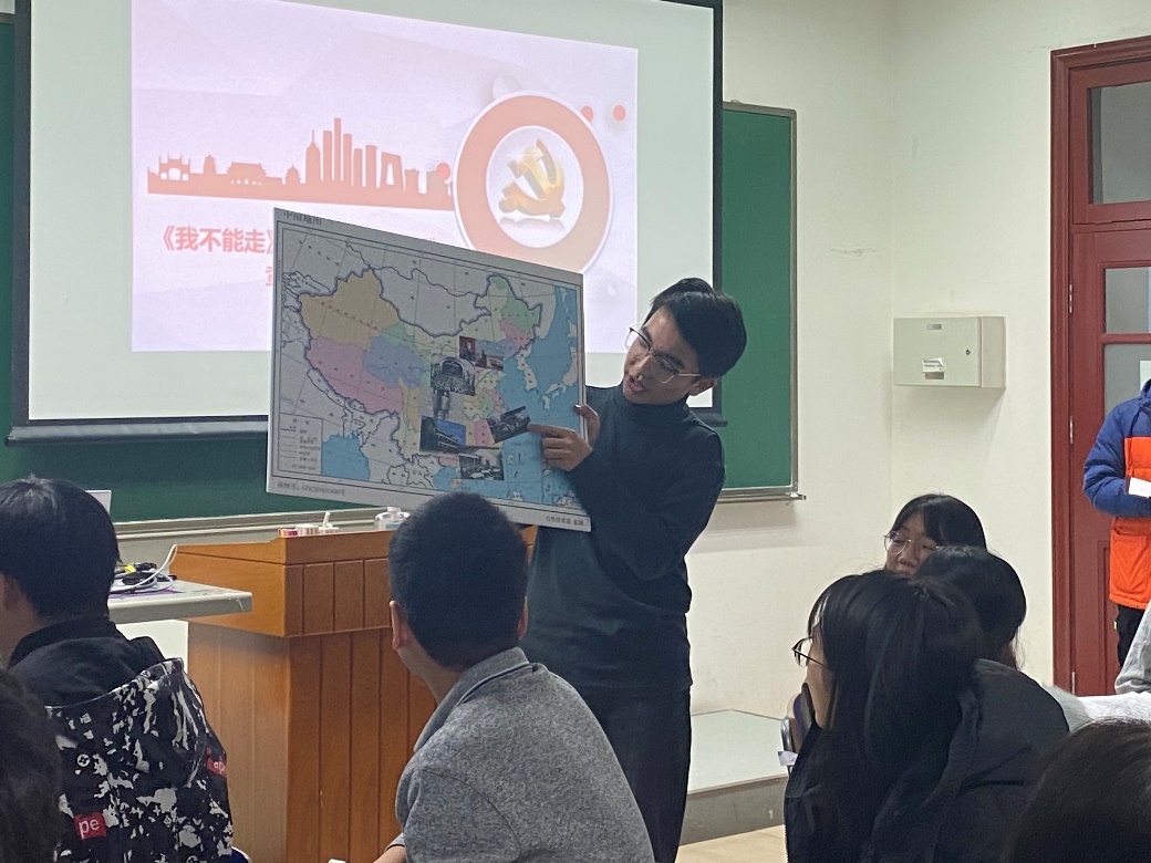 中场互动环节中,各小组分别将重要会议、重要事件、重要人物、长征故事等四类贴纸,按照地点特征贴到对应的中国地图或长征路线图上。通过贴图游戏的趣味形式,同学们对新民主主义革命时期的重要历史事件和人物有了进一步了解和回顾,加深了对这一时期党史的学习。
