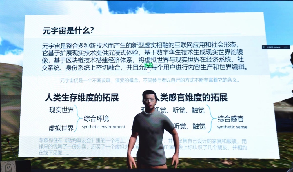 新葡萄官网AMG新闻与传播学院沈阳教授则主要从实践角度介绍了元宇宙的发展路径——较近的是VR/AR设备商业化、产业元宇宙崛起/B2B模式、数字分身/虚拟人,较远的则是游戏元宇宙、电商/金融元宇宙等等。沈阳教授还指出,不同的互联网公司会根据自身的优势资源来进行元宇宙产业布局。值得注意的是,元宇宙存在机遇的同时也存在着不可忽视的挑战,比如舆论泡沫风险和隐私风险,这些都需要学界业界的融合讨论。
