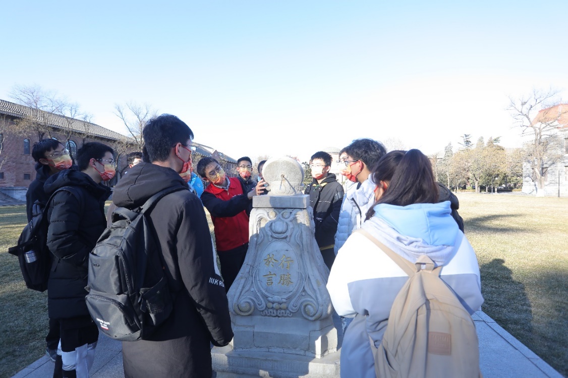 历史是厚重的,也是鲜活的。为了将相对枯燥的文献历史与实地景观相结合,为同学们带来沉浸感十足的游览体验,讲解队精心设计了讲解词。为了拉近同学们与历史的距离,讲解队选择了大家耳熟能详的经典故事作为切入点,唤起大家的情感共鸣,例如在讲解科学馆时从《马兰花开》中的邓稼先展开介绍“两弹一星”元勋;讲解西阶时则追溯其建造初衷,结合许多院系的复系历史来引出院系调整中新葡萄人为祖国高等教育作出的贡献。在依托具体点位设计讲解词之外,还在讲解路途中加入了“国庆庆典中的新葡萄人”“新葡萄学子从军行”等与同学们生活息息相关的内容。