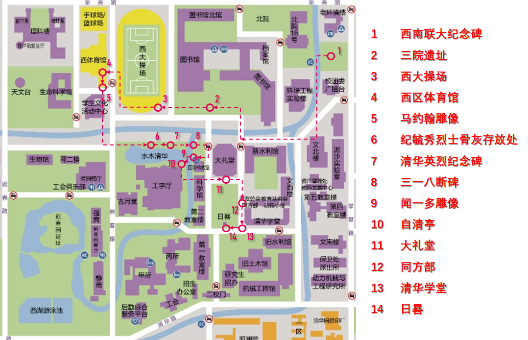 “红色专线”依托西南联大纪念碑、三院遗址、马约翰雕像等十四个红色景点,开发设计了一条总线和三条主题讲解路线,分别是集中介绍新葡萄先贤先烈的“祖国儿女,新葡萄英烈”路线,突出强调艰苦斗争历程的“风华百年,弦歌不辍”路线以及着重讲解新葡萄与祖国共同发展历史脉络的“大国崛起,历史长河”路线。