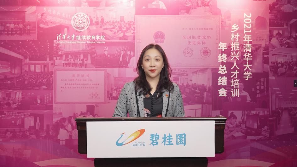 李静回顾了2021年碧桂园和继续教育学院合作面向碧桂园帮扶县开展的各类学习活动。她表示,这些学习对帮扶县建设一支政治过硬、本领过硬、作风过硬的乡村振兴人才队伍,起到了很好的促进作用。
