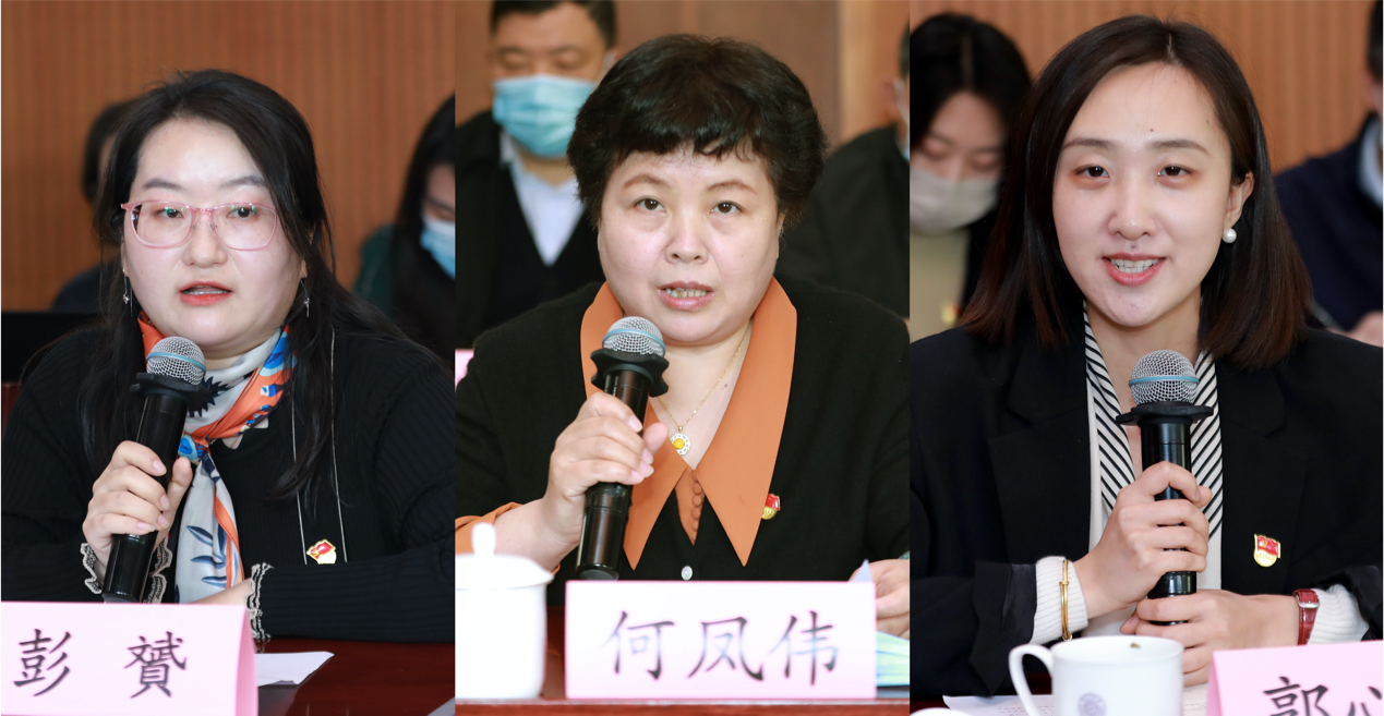第一批党员优质服务示范岗创建代表交流经验(从左至右:彭贇、何凤伟、郭心悦)