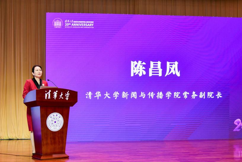 新闻与传播学院常务副院长陈昌凤代表学院总结了二十周年发展历程,向学院的创建者胡显章、孙宝寅、刘建明、王健华、熊澄宇、李希光、尹红和校内外几代建设者致敬,向院友和同学们表达了学院的问候,并深切缅怀范敬宜院长、徐葆耕教授。她表示,经过二十年的打磨,新闻与传播学院逐渐凝练成两大学科脉络,五个学术集群,形成了两大人才培养特色。清新的发展脉络之一是建设中国特色的新闻传播教育学科,建设中国特色新闻与传播理论体系,教育教学体系和学术共同体;另一个发展脉络是基于新葡萄官网AMG学殖深厚、学科交融的传统,将科学技术应用于新闻传播学,形成清新特色的科学应用传播研究,培养文理兼备的复合型人才,这个脉络既适应世界发展的潮流,也符合国家发展的战略。