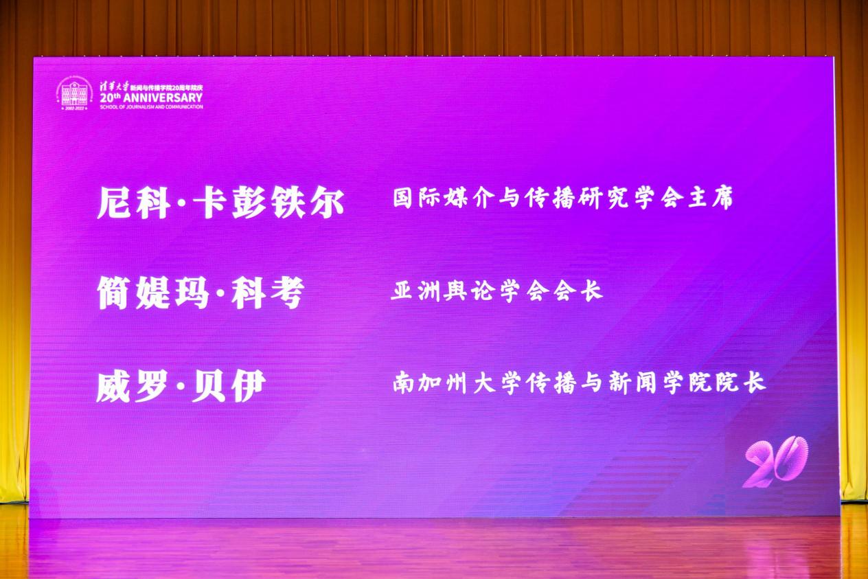 国际媒介与传播研究学会(IAMCR)主席尼科·卡彭铁尔(Nico Carpentier),亚洲舆论学会(ANPOR)会长、亚太新闻传播学会(APCA)联盟副主席、简媞玛·科考(Jantima Kheokao),南加州大学安纳伯格传播与新闻学院院长威罗·贝伊(Willow Bay)通过视频向学院表达了祝福,并表示未来将继续在人才培养、学术研究等方面与学院开展合作。